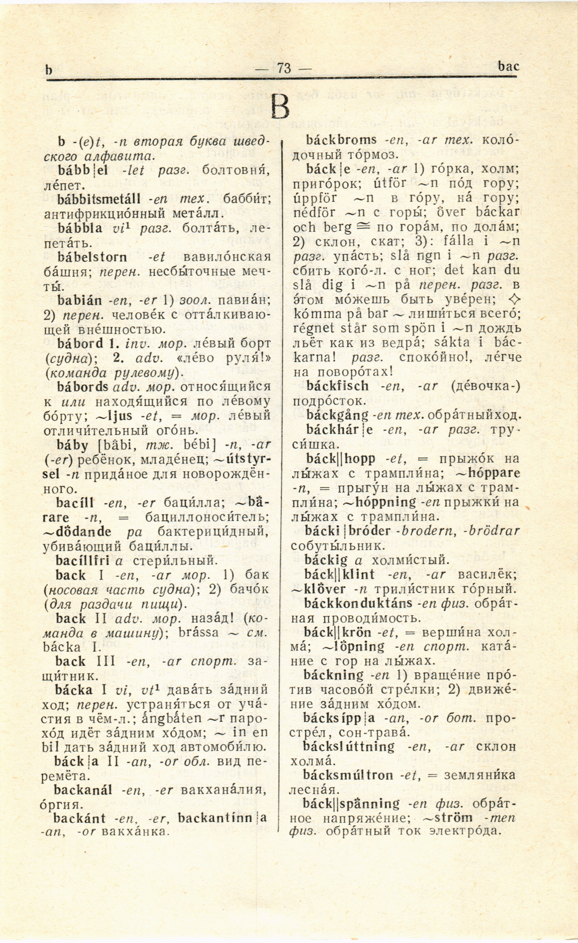 back I -en, -ar мор. 1) бак