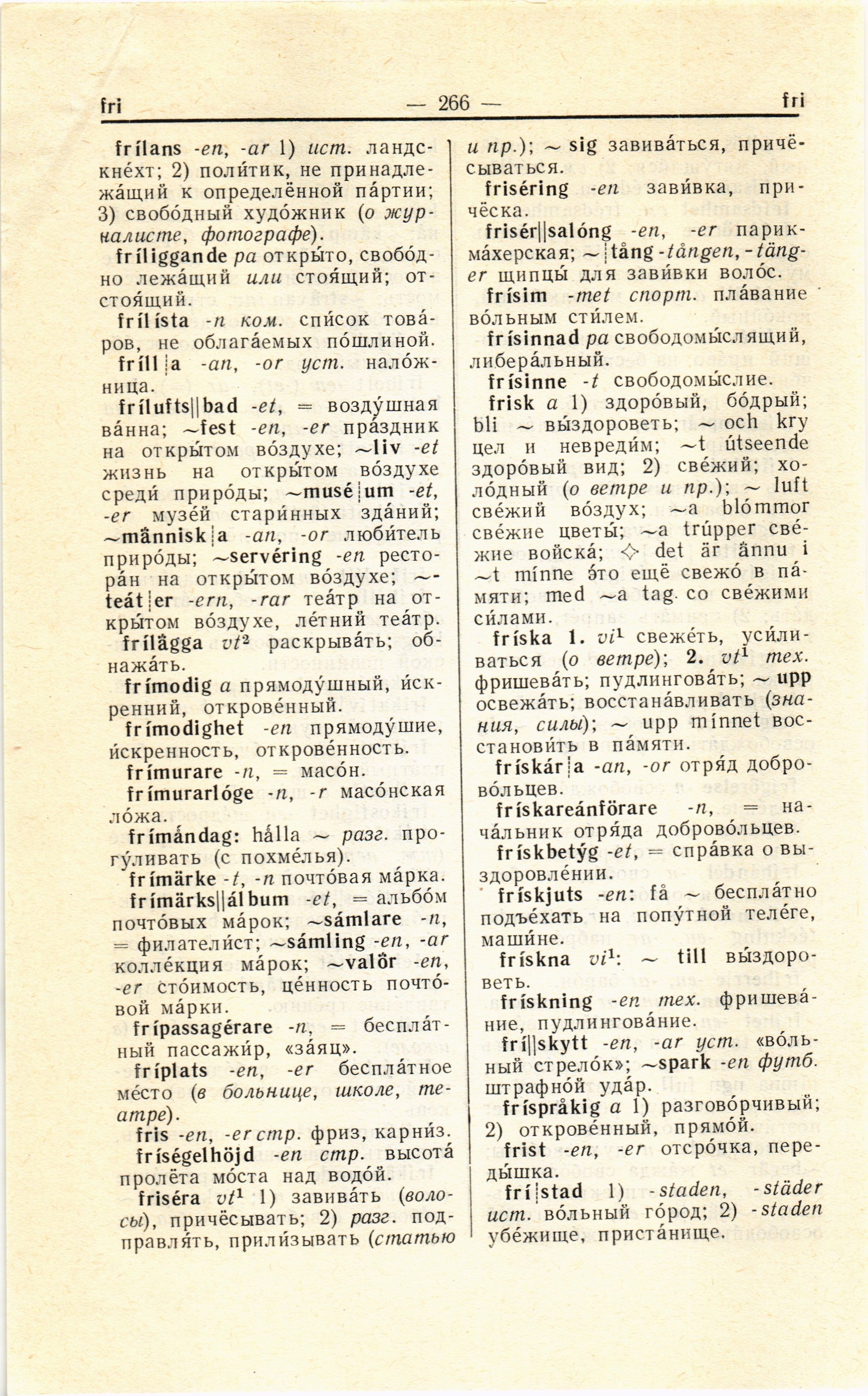 frílans -en, -ar 1) ист.