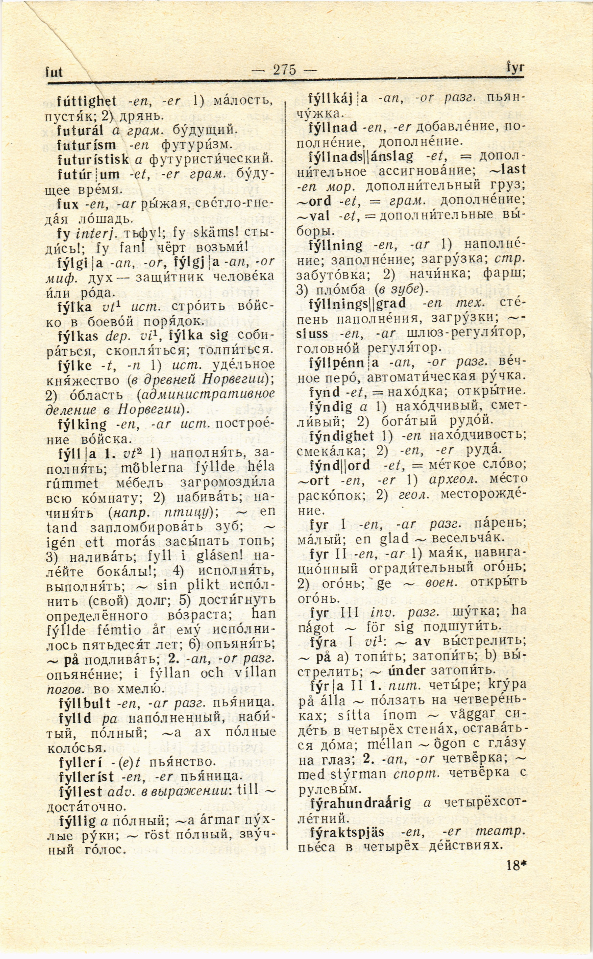 fýllning -en, -ar 1)