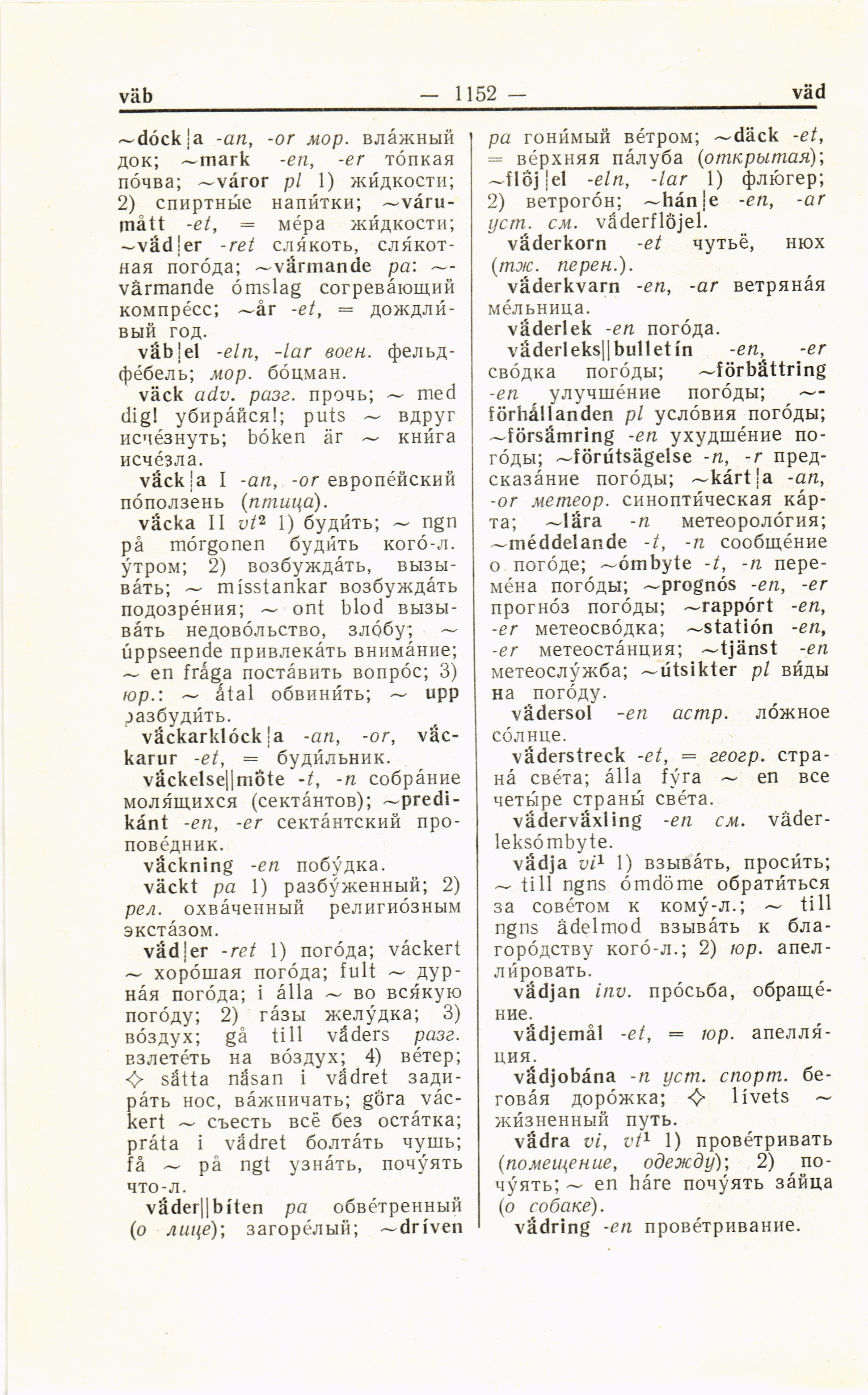 vadring -en провётривание.