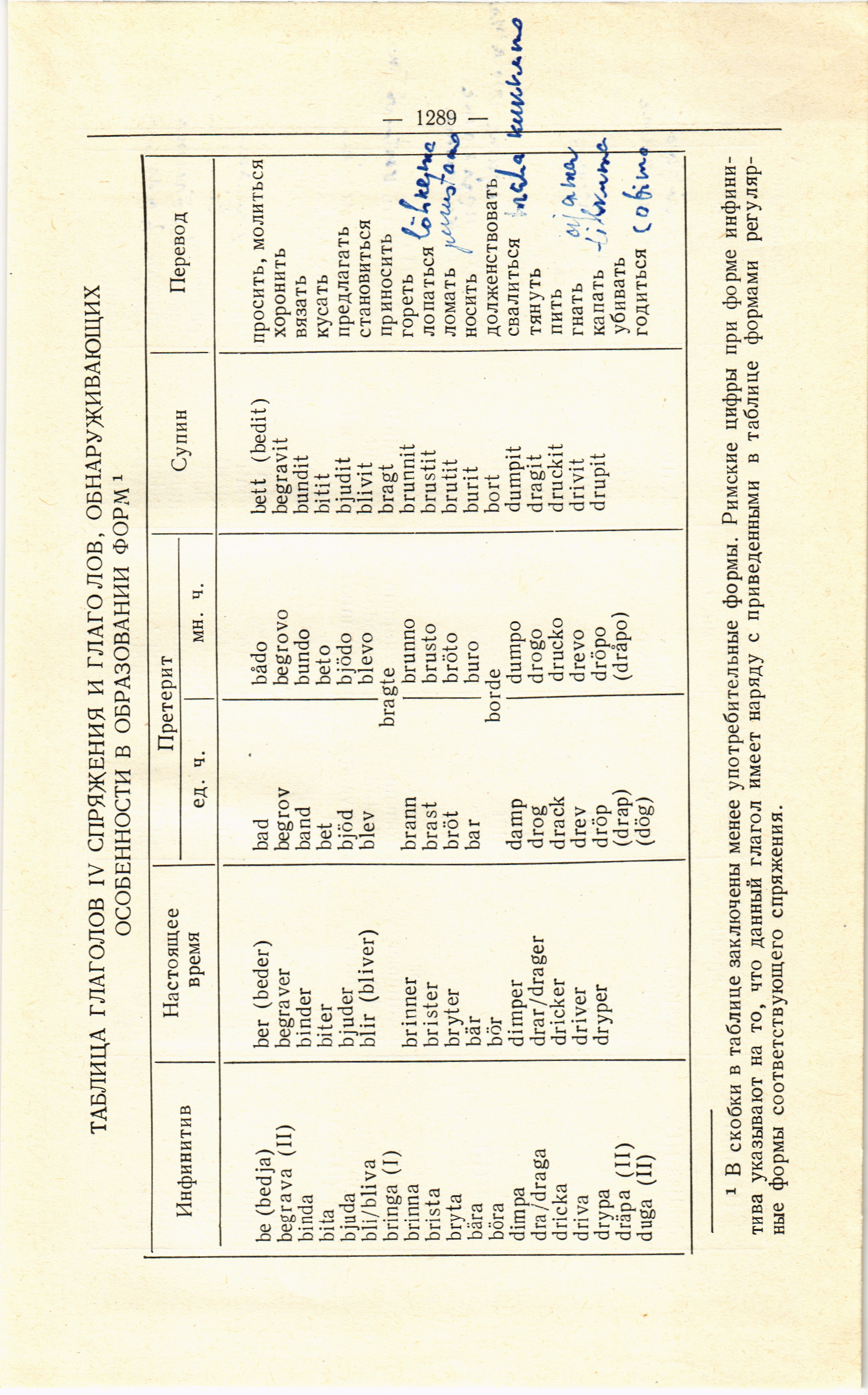 Full resolution (JPEG) - On this page / på denna sida - Краткий очерк грамматики шведского языка - Таблица глаголов IV спряжения и глаголов, обнаруживающих особенности в образовании форм - be ...