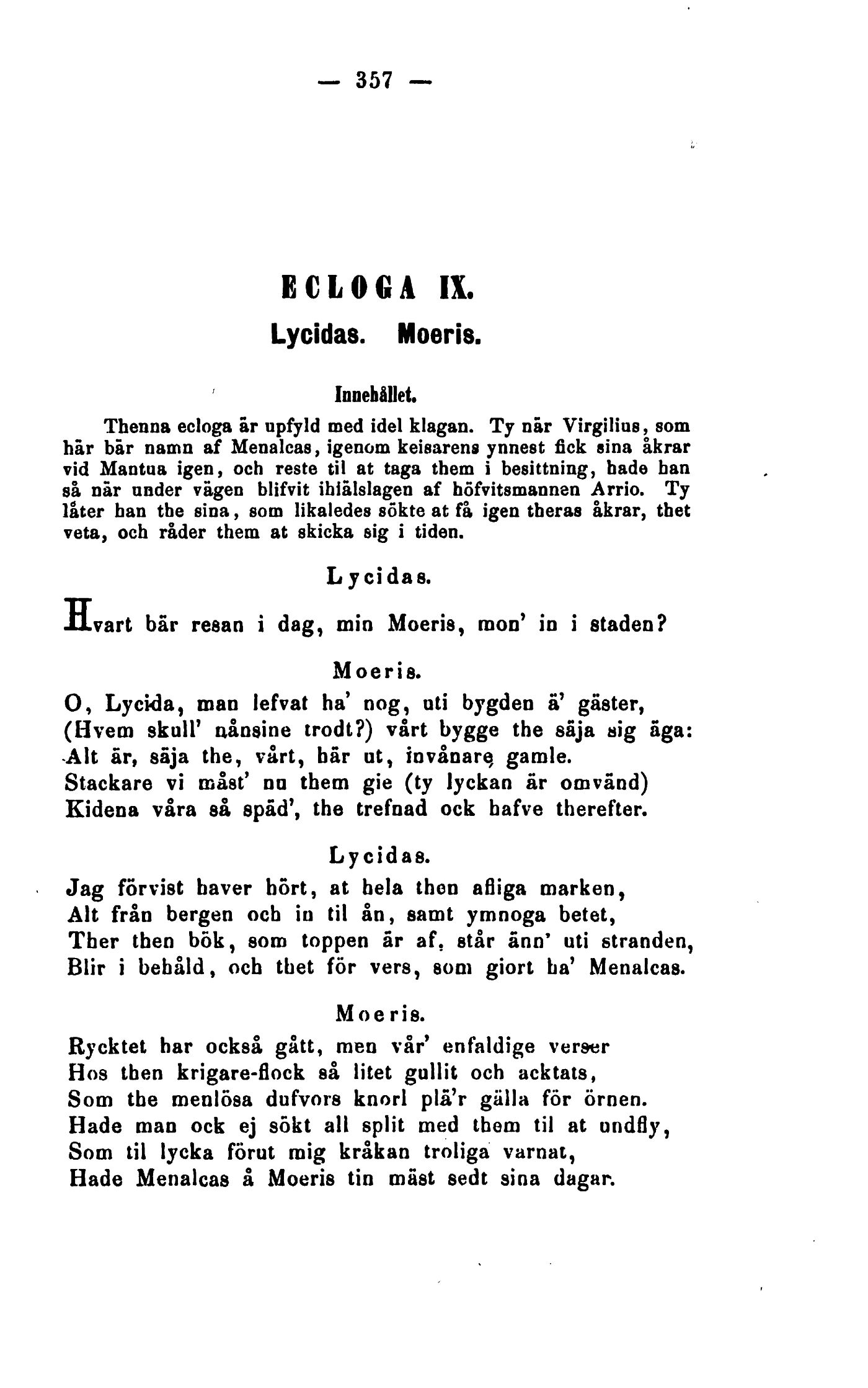 Thenna ecloga är upfyld med idel klagan. Ty når Virgilius, som