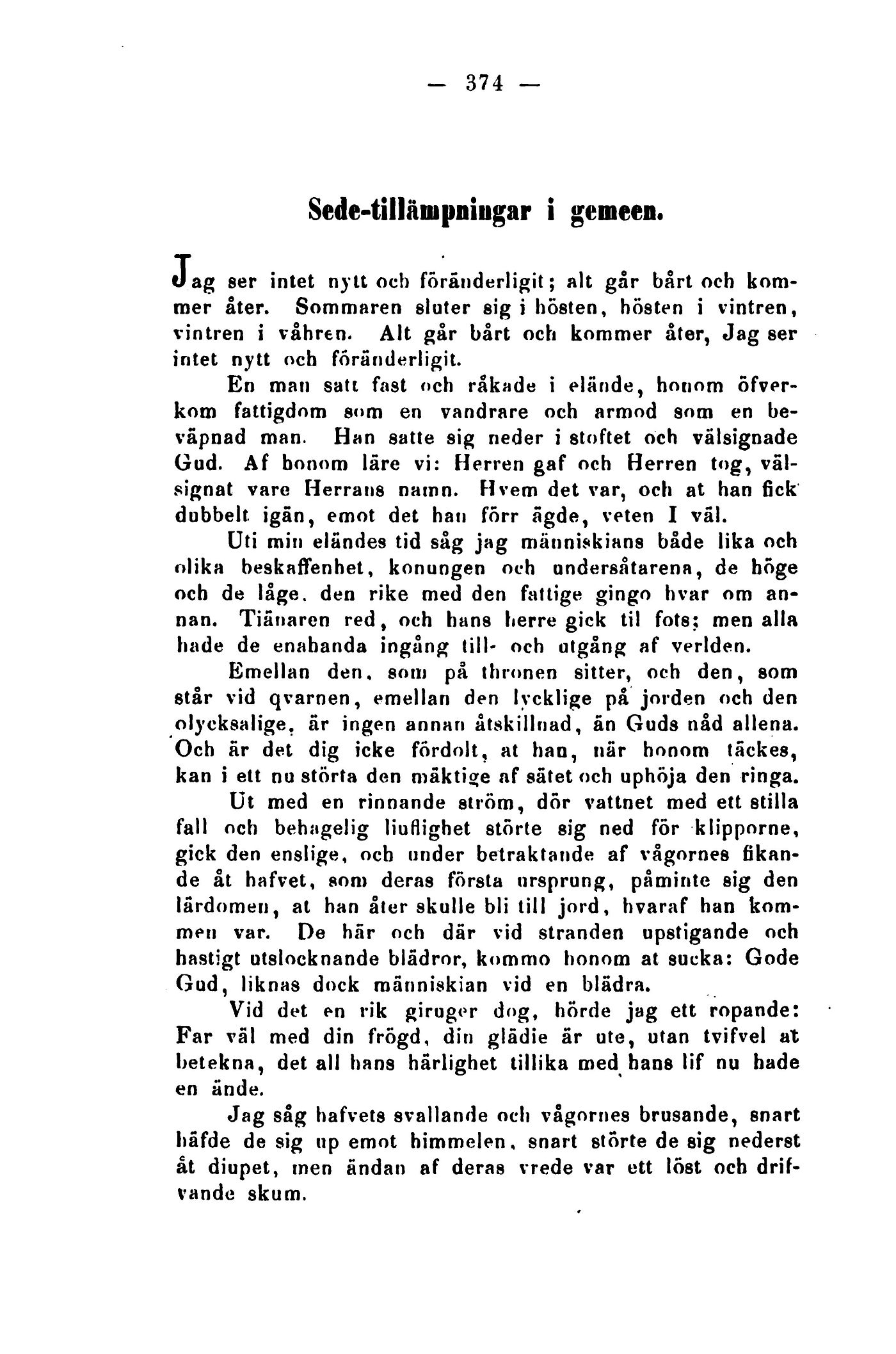 hastigt utslocknande blädror, kommo honom at sucka: Gode