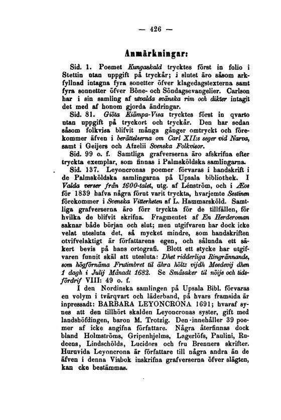 Sid. 137. Leyoncronas poemer förvaras i handskrift i