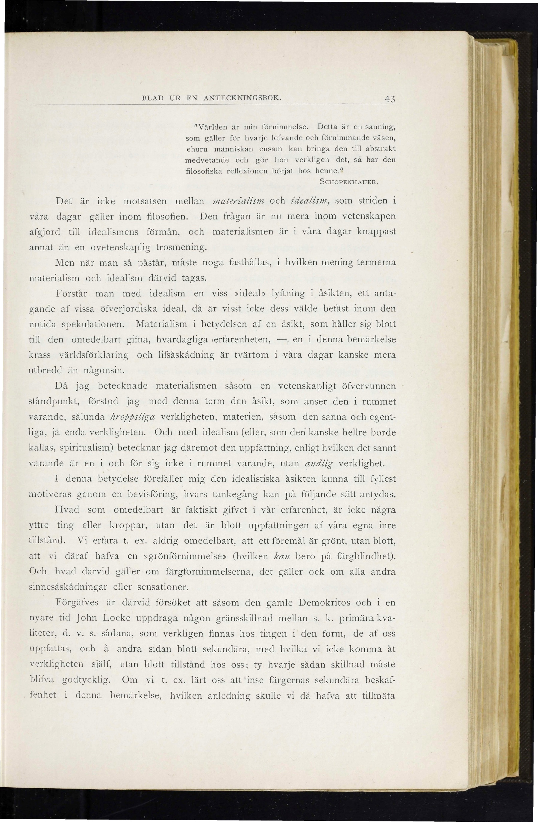 afgjord ti11 idealismens förmån, och materialismen är i våra dagar knappast