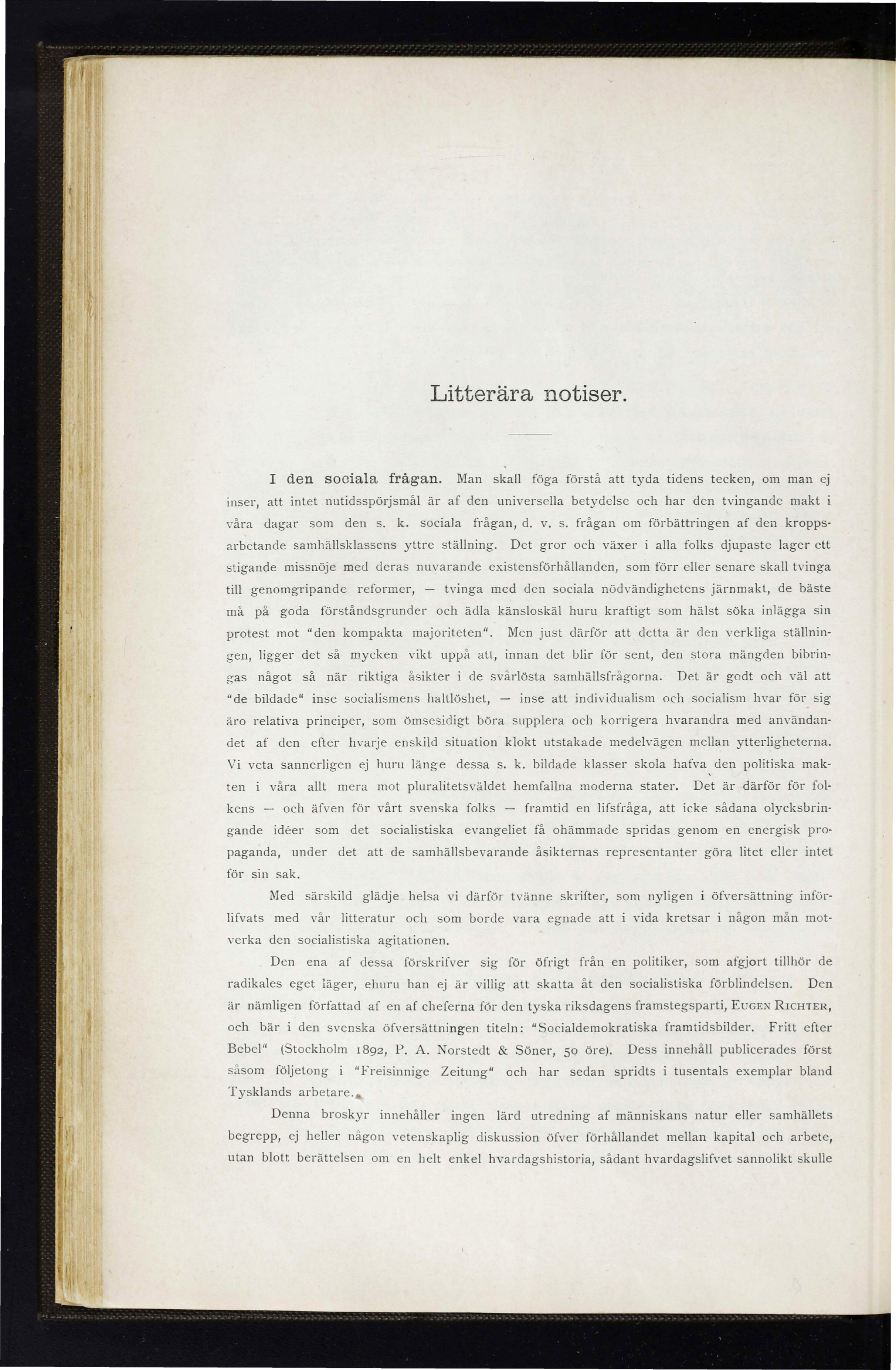 Full resolution (JPEG) - On this page / på denna sida - Häfte 2 - Litterära notiser - I den sociala frågan (Eugen Richter, Franz Mehring, Maurice Block)