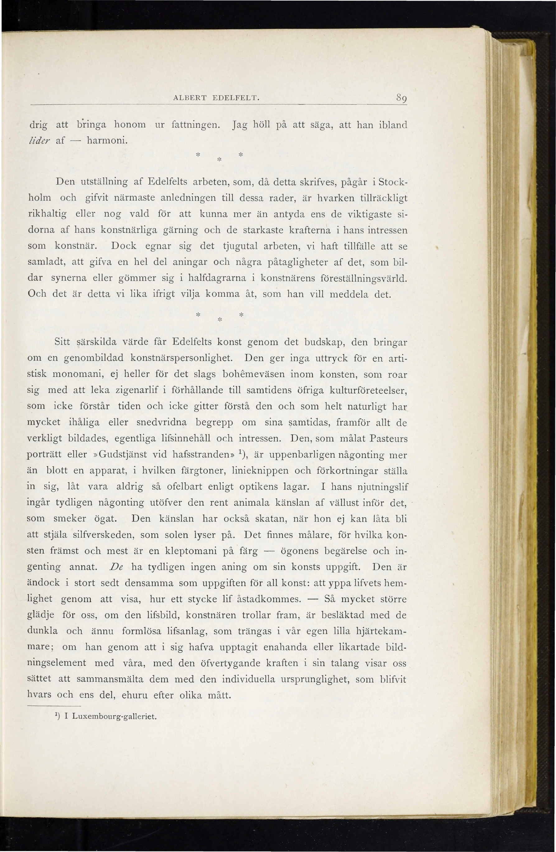 Den utställning af Edelfelts arbeten, som, då detta skrifves, pågår i Stock-
