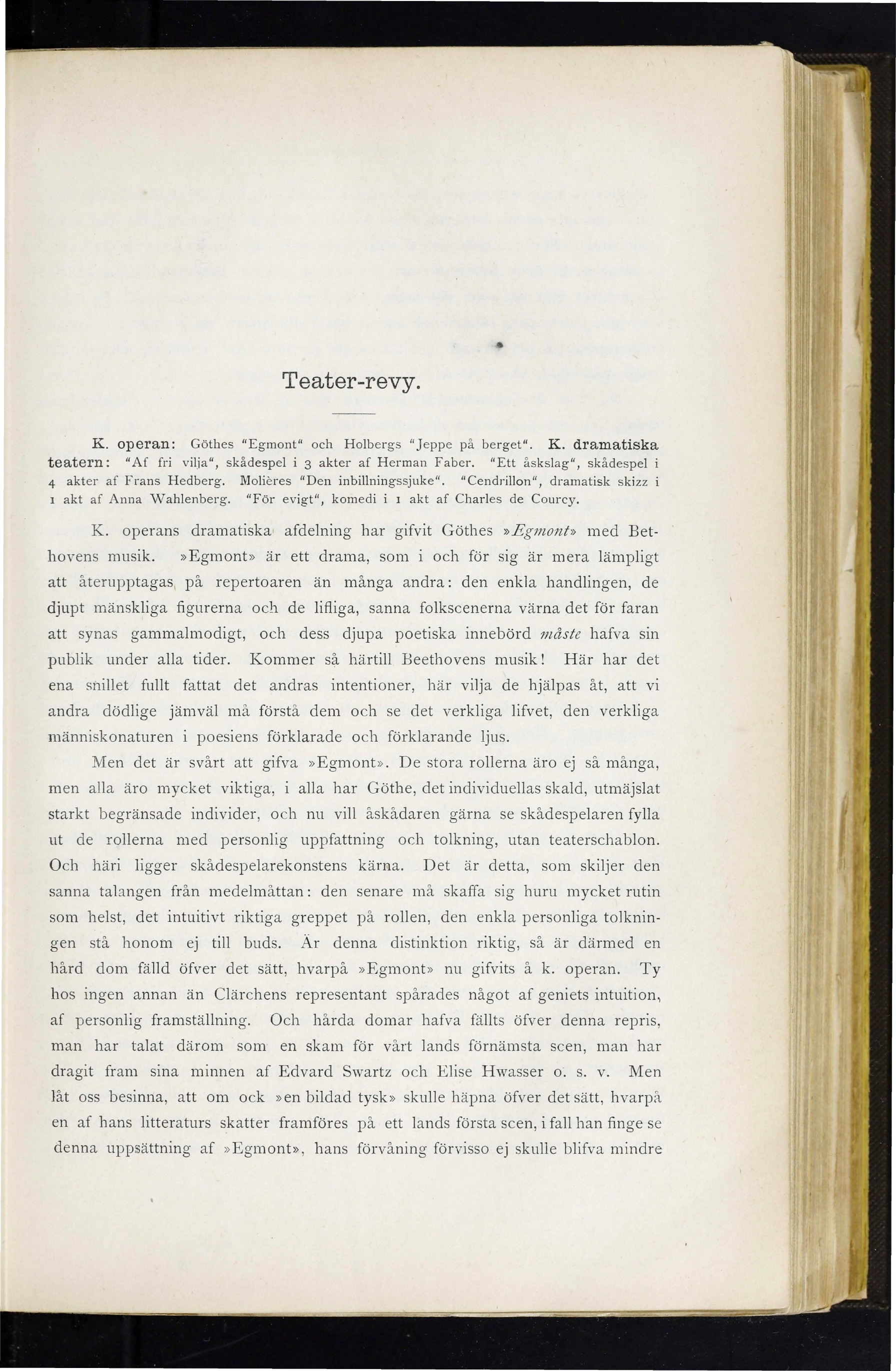 K. operan: Göthes "Egmont" och Holbergs "Jeppe på berget". K. dramatiska