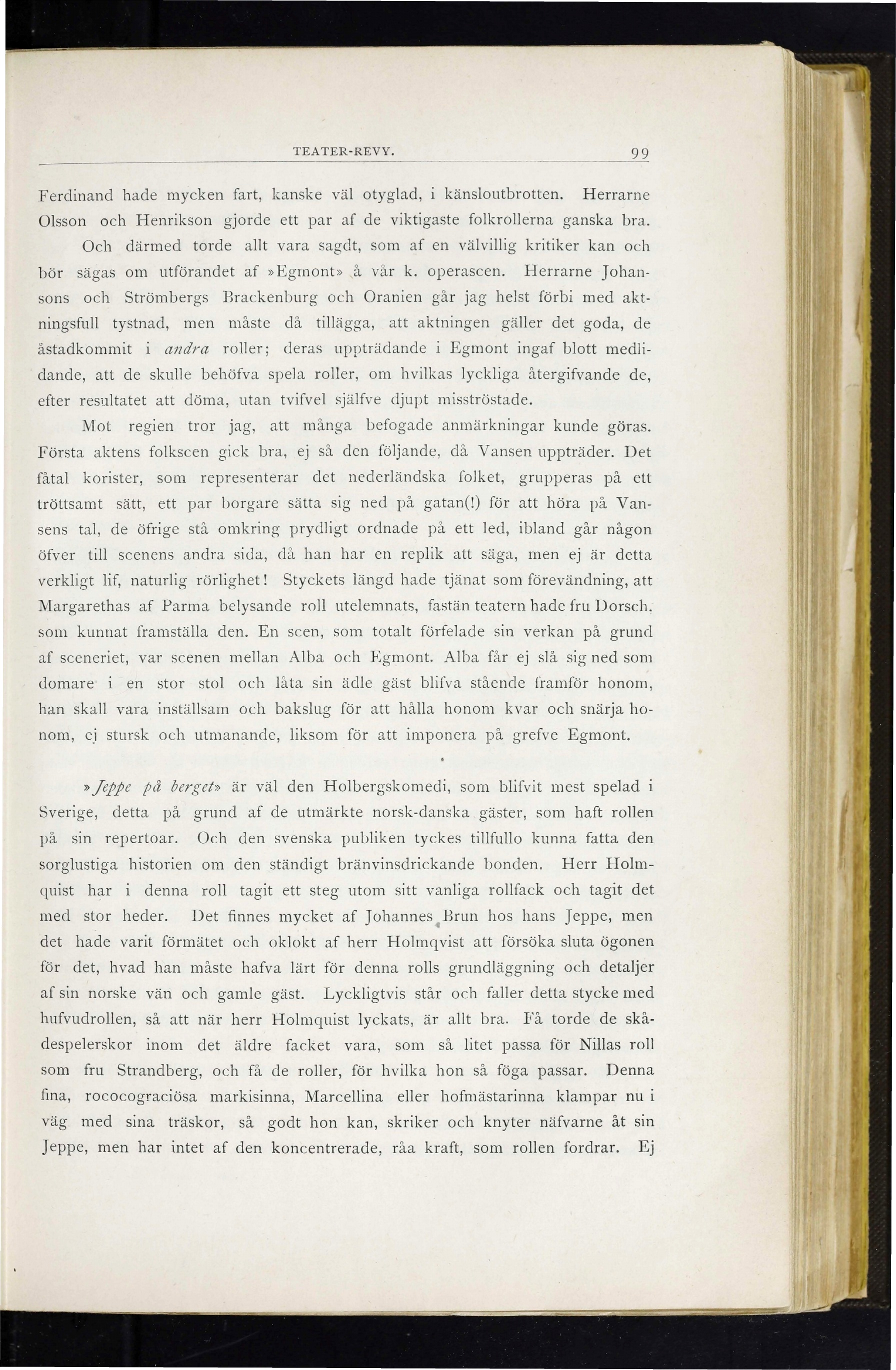 åstadkommit i andra roller; deras uppträdande i Egmont ingaf blott medli-