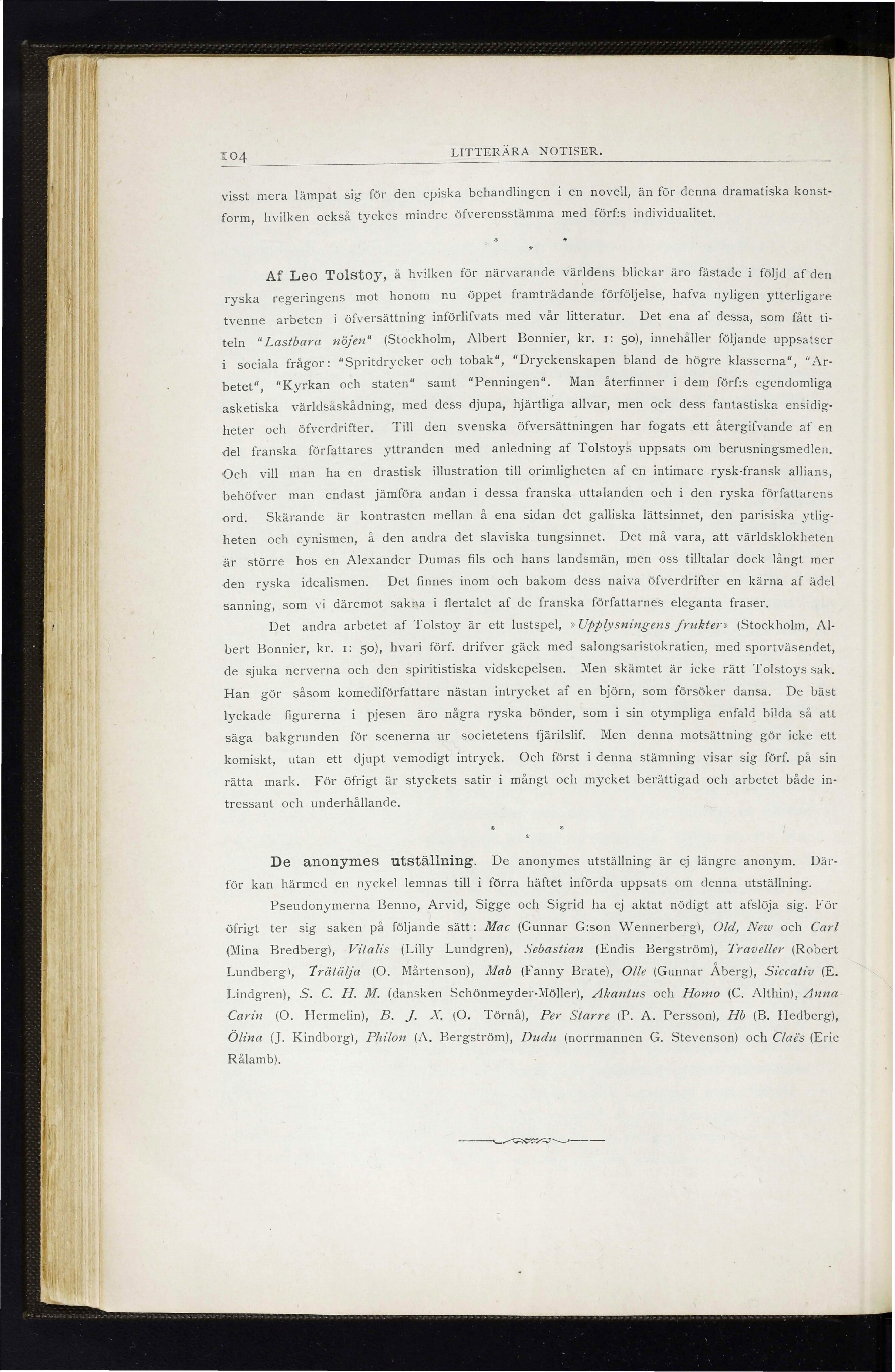 <lel franska författares yttranden med anledning af Tolstoys uppsats om berusningsmedlen.