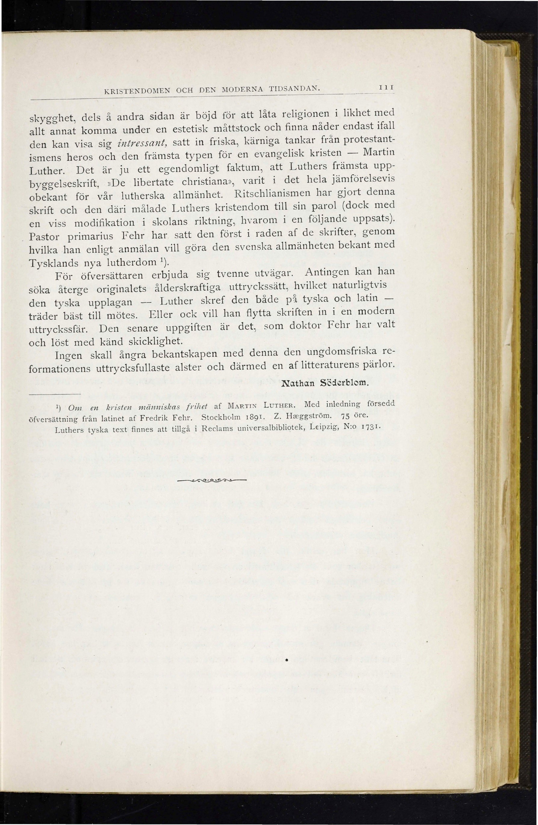 1) Om en kristen männi’skas fri’het af MARTIN LUTHER. Med inledning försedd