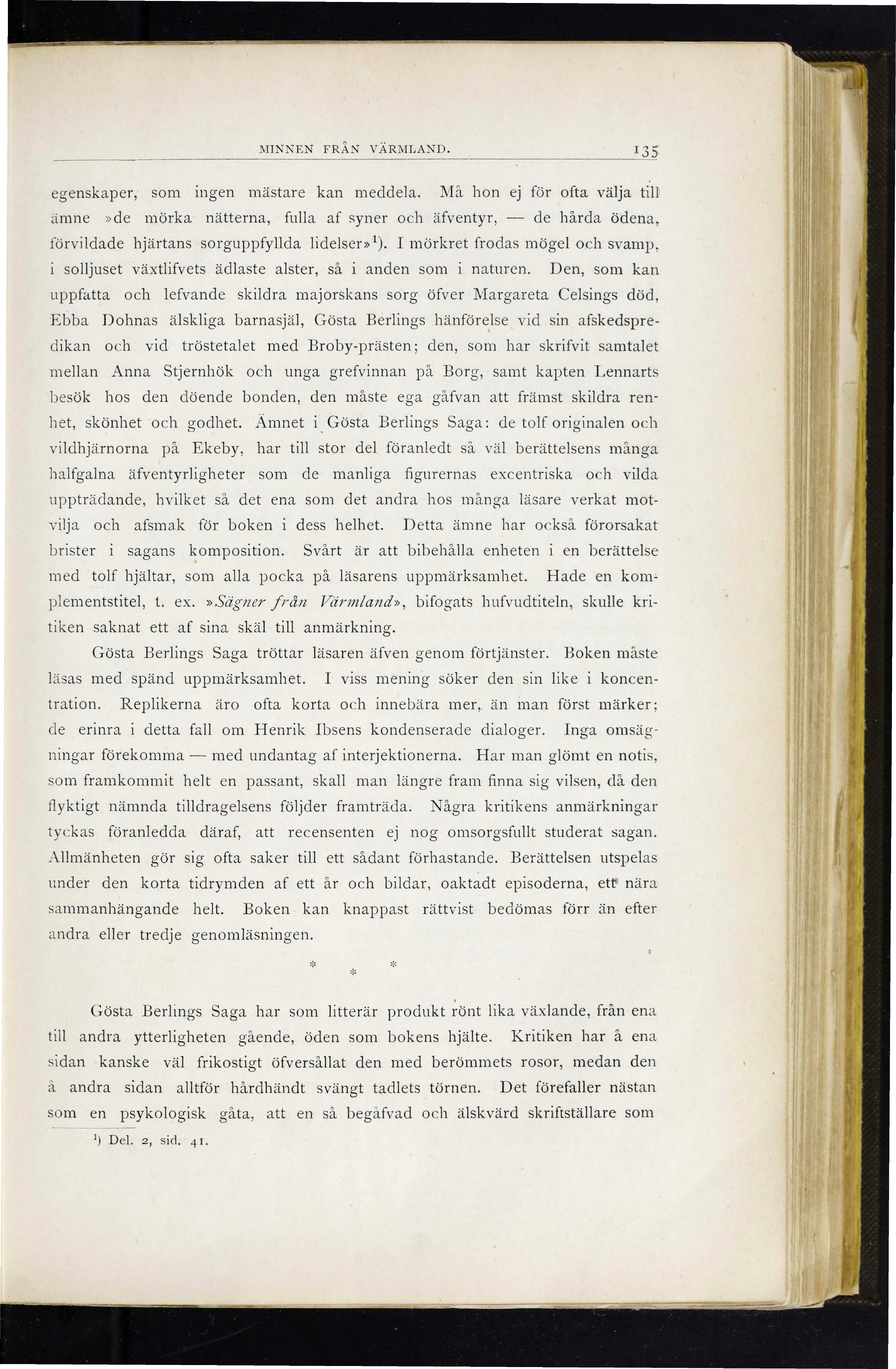 Gösta Berlings Saga tröttar läsaren äfven genom förtjänster. Boken måste