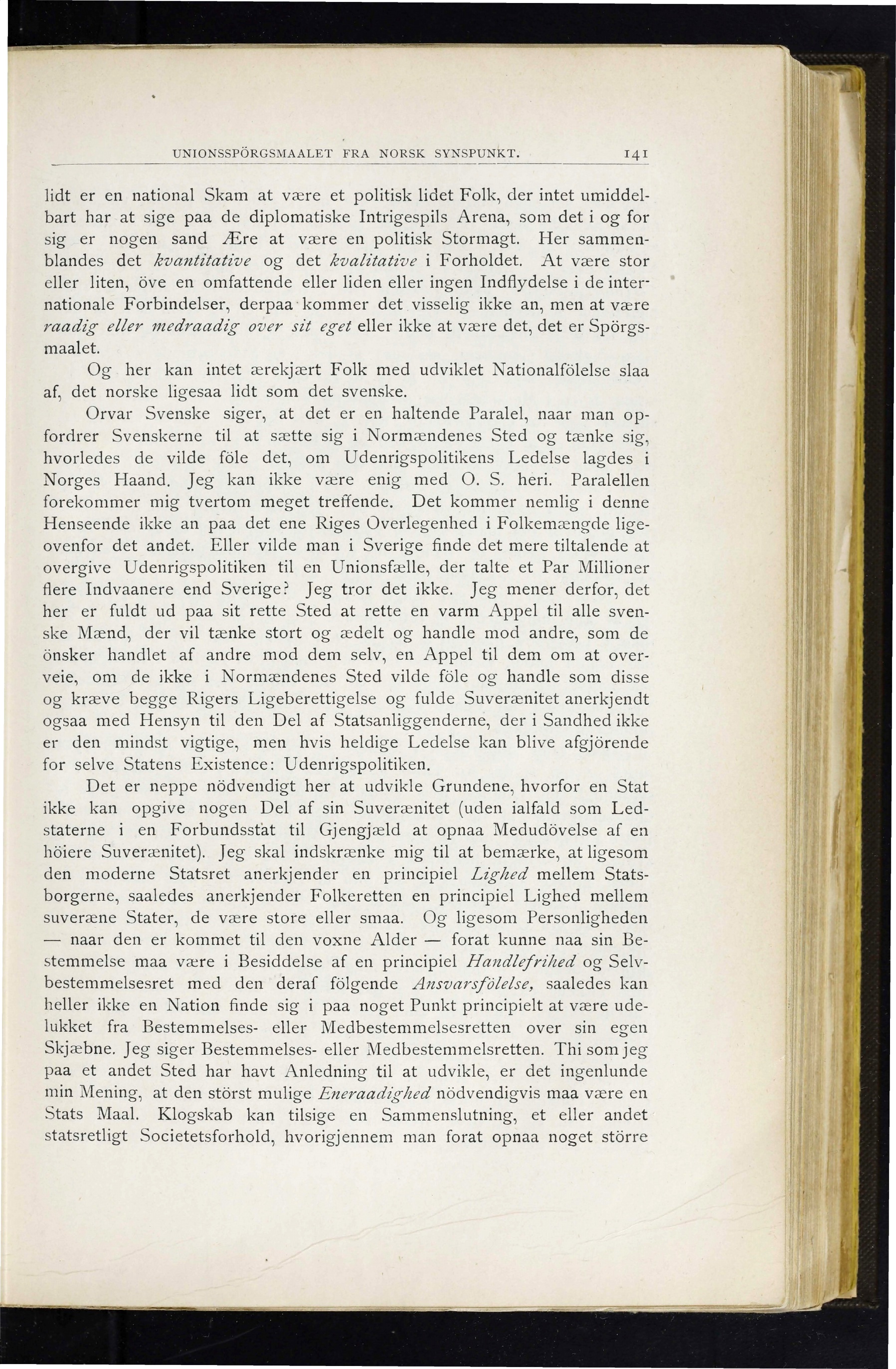 UNIONSSPÖRGSMAALET FRA NORSK SYNSPUNKT.