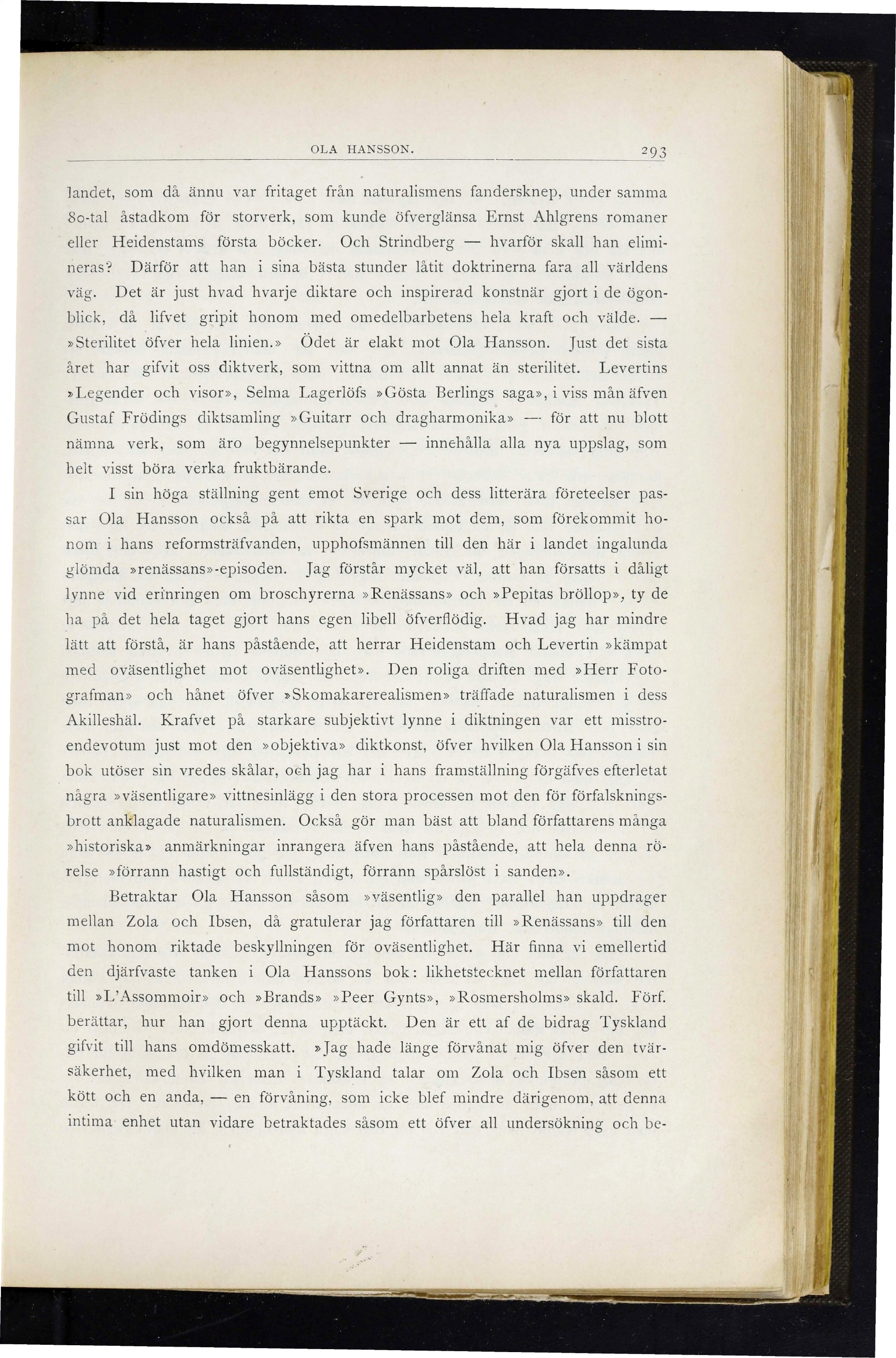 »Sterilitet öfver hela linien. » Ödet är elakt mot Ola Hansson. Just det sista