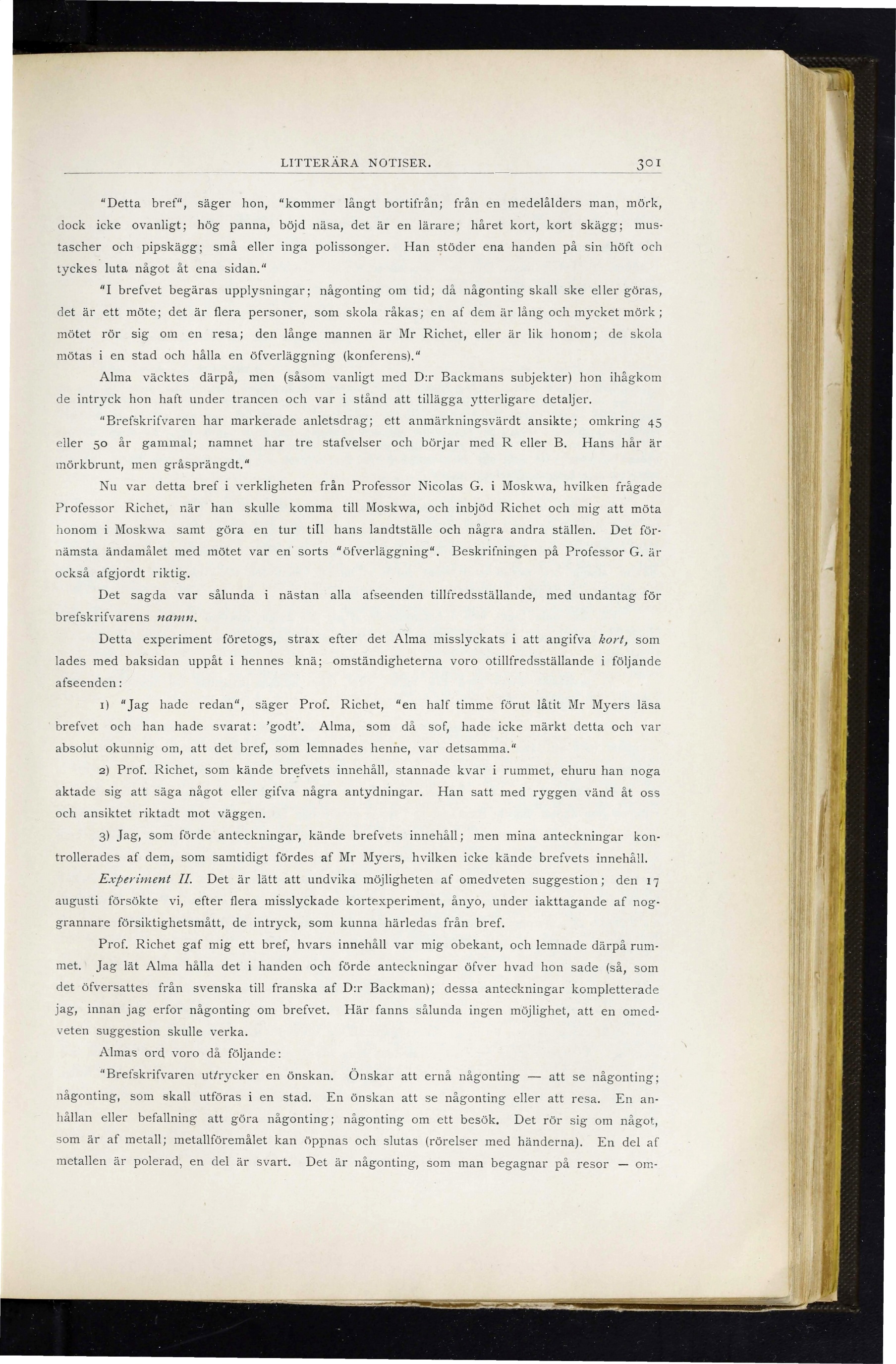 1) "Jag hade redan", säger Prof. Richet, "en half timme förut låtit Mr Myers läsa
