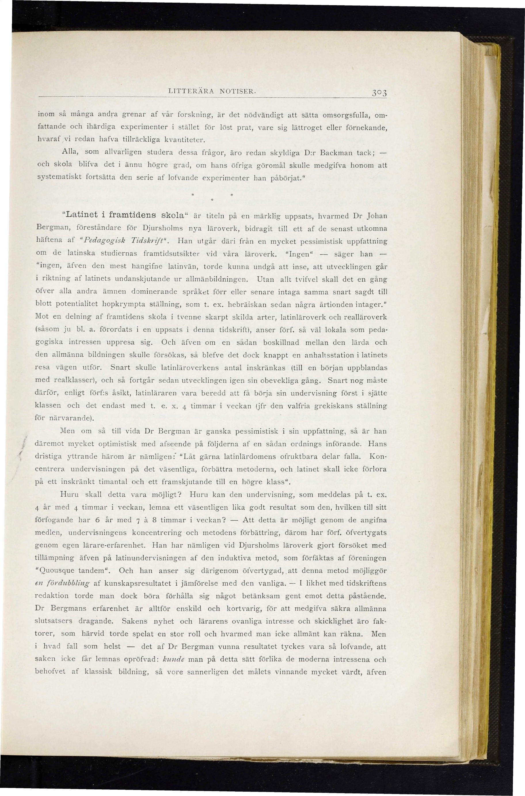 - “Latinet i framtidens skola“ (Johan Bergman)