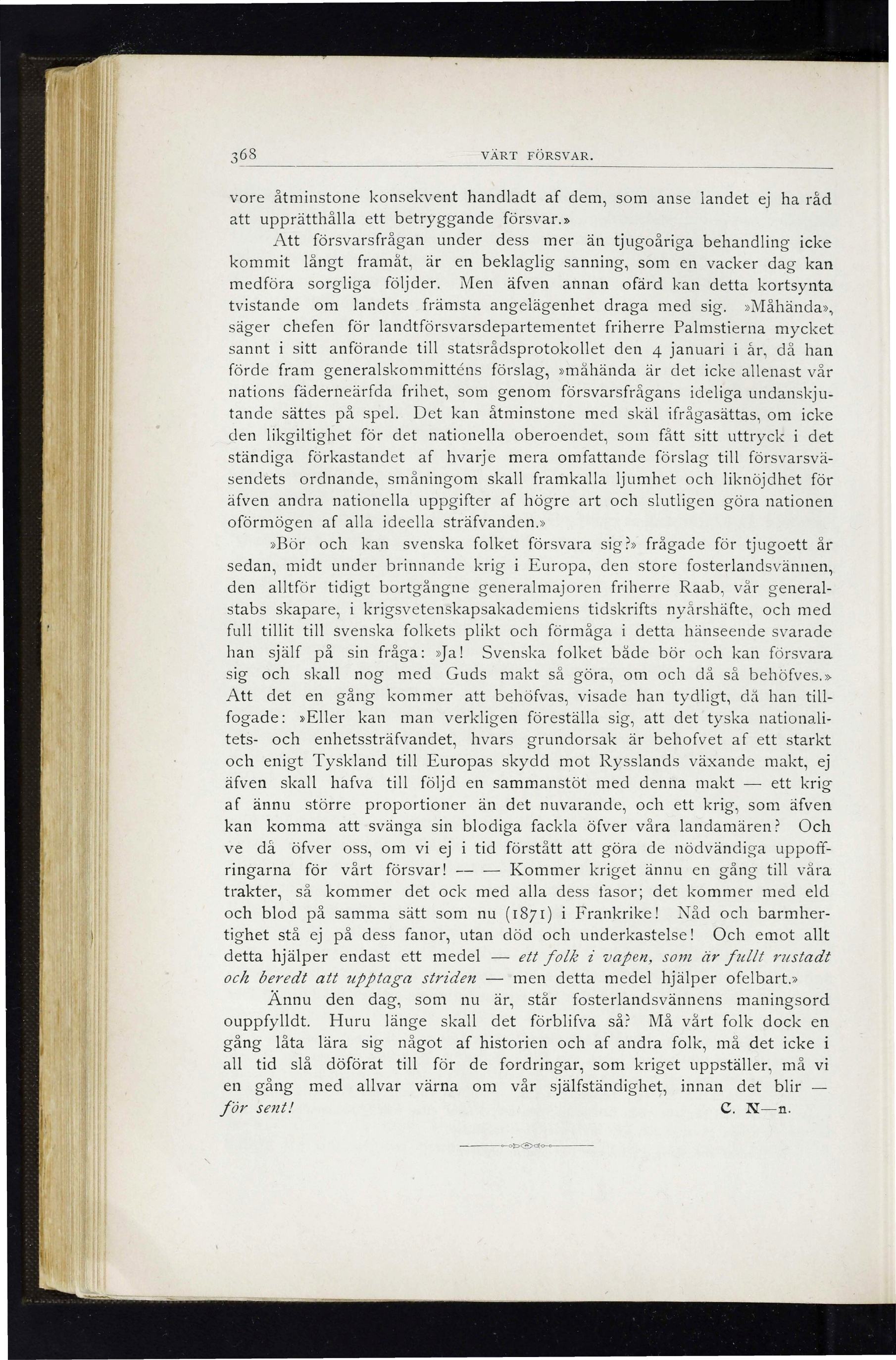 nations fäderneärfda frihet., som genom försvarsfrågans ideliga undanskju-