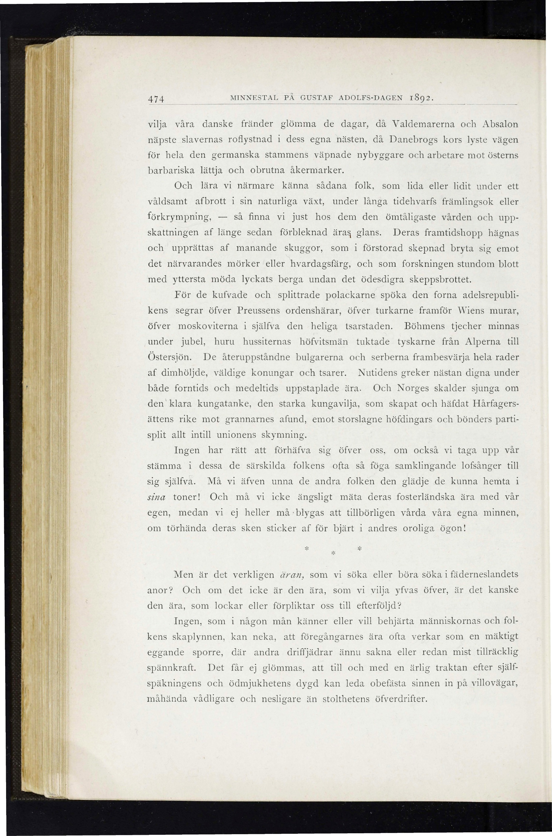 474 MINNESTAL PÅ GUSTAF ADOLFS-DAGEN 1892.
