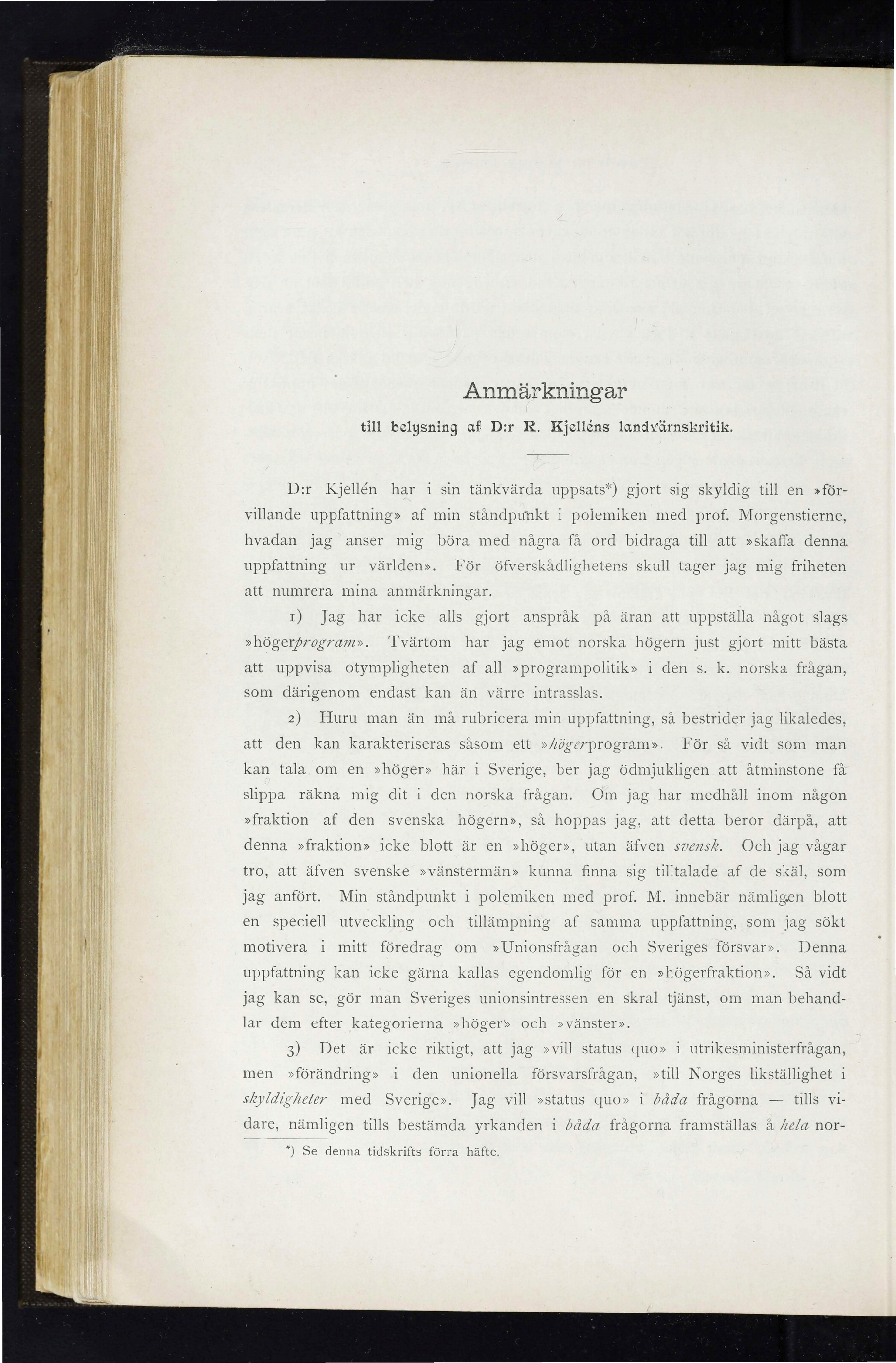 till belysning a~ D:r R. Kjellens lanchtcir11skritik.