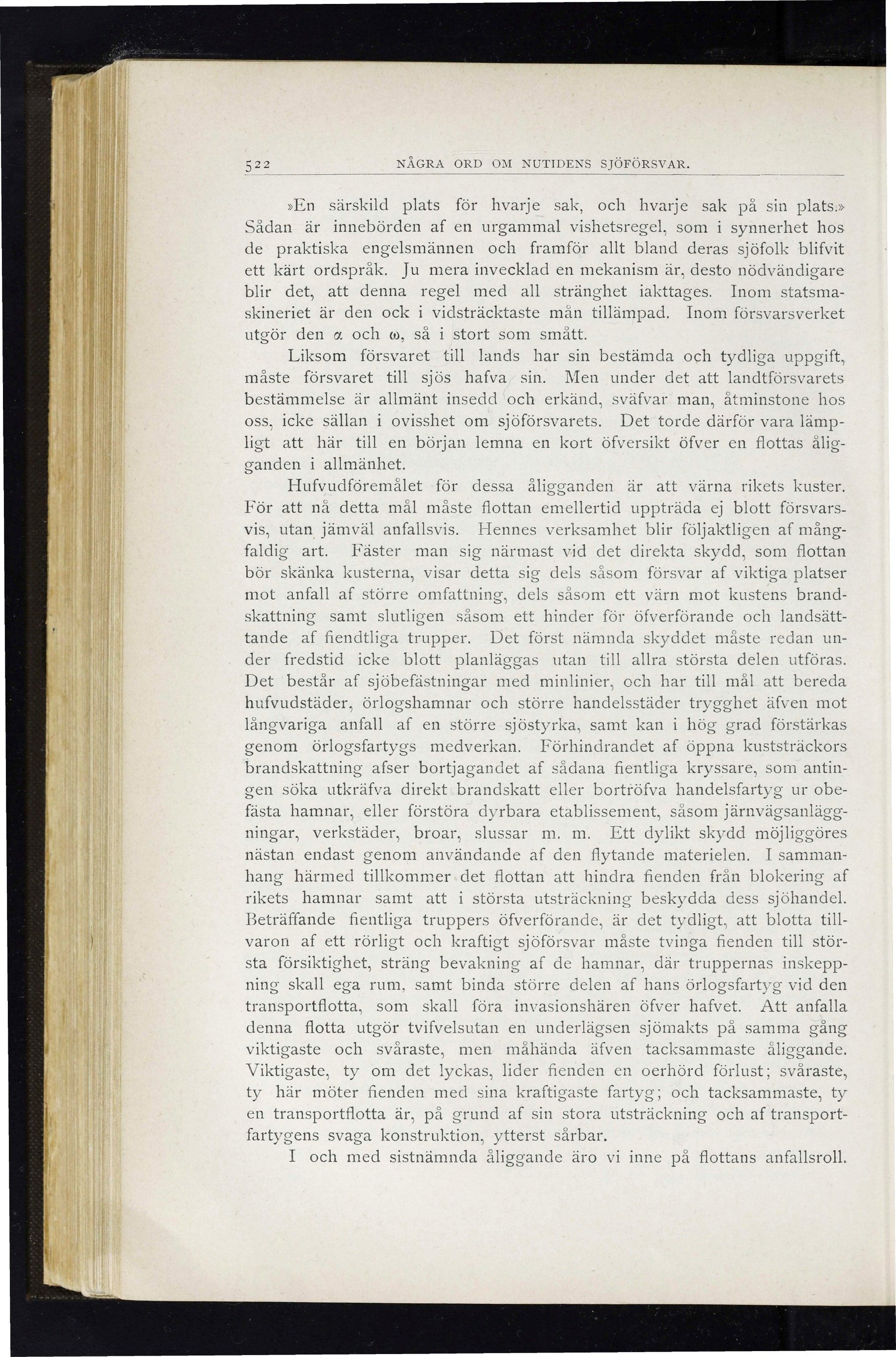 522 NÅGRA ORD OM NUTIDENS SJÖFÖRSVAR.