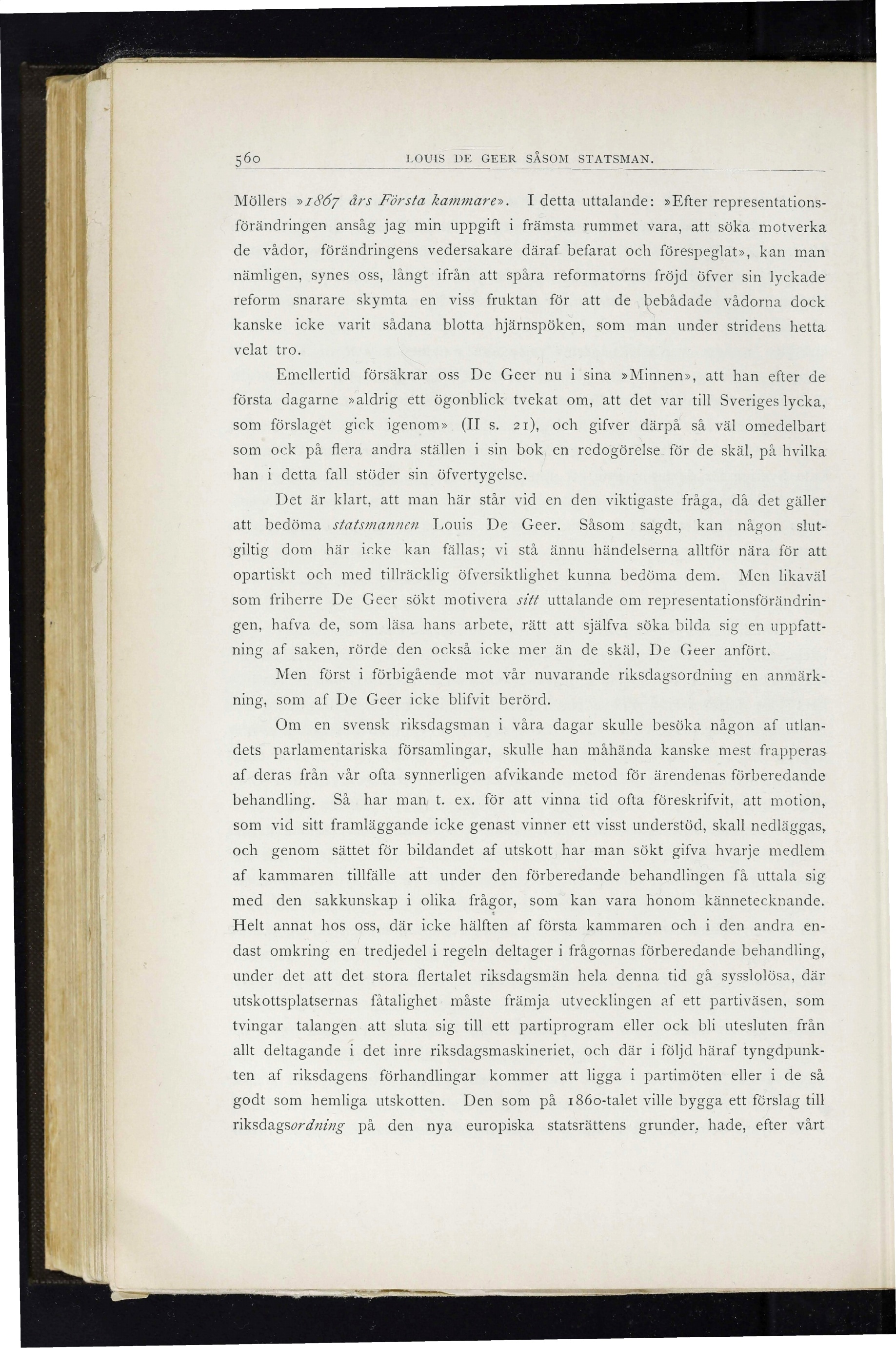 lVIöllers »I867 års Första kammare». I detta uttalande: »Efter representations-
