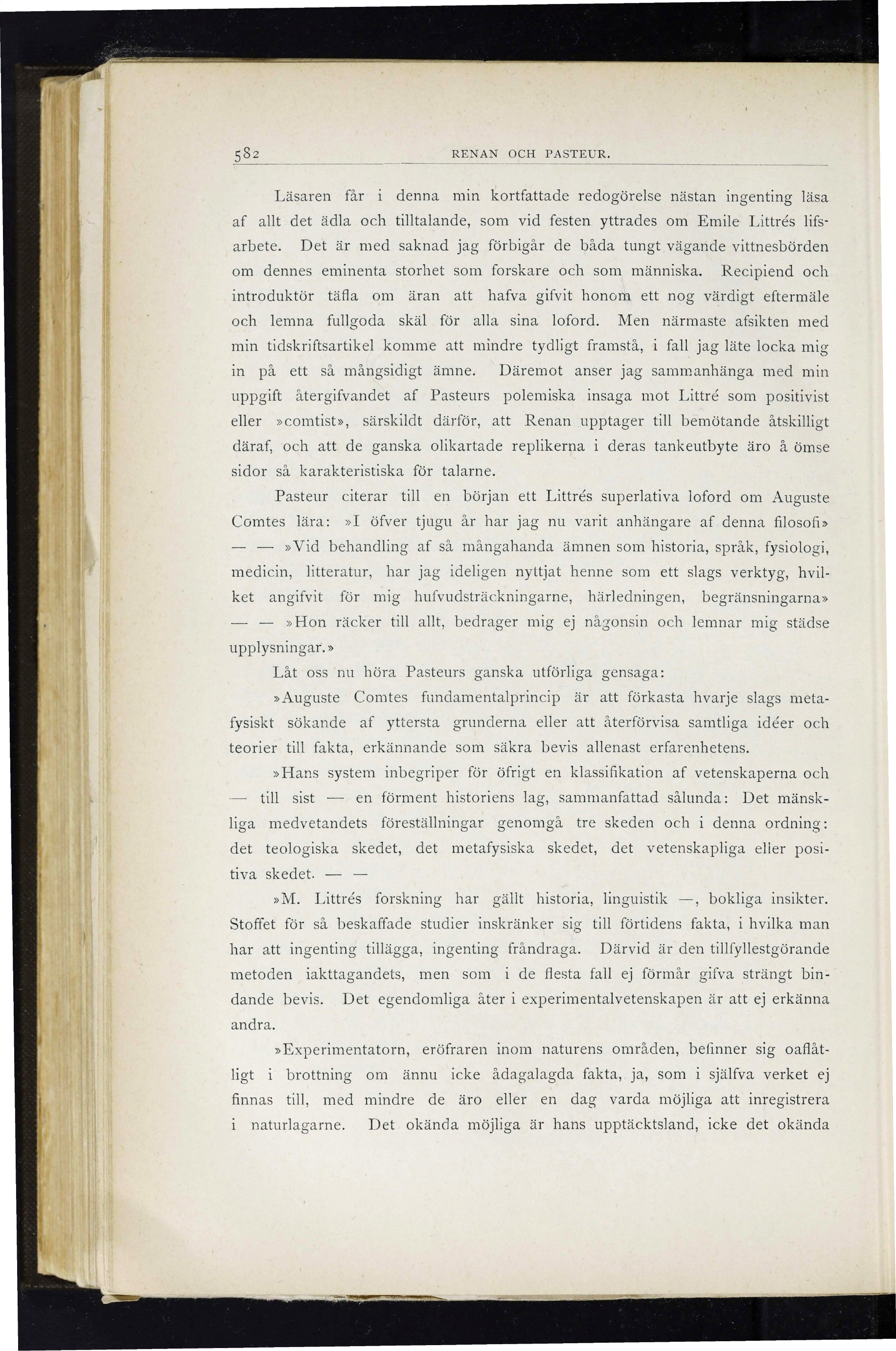 uppgift återgifvandet af Pasteurs polemiska insaga mot Littre som positivist