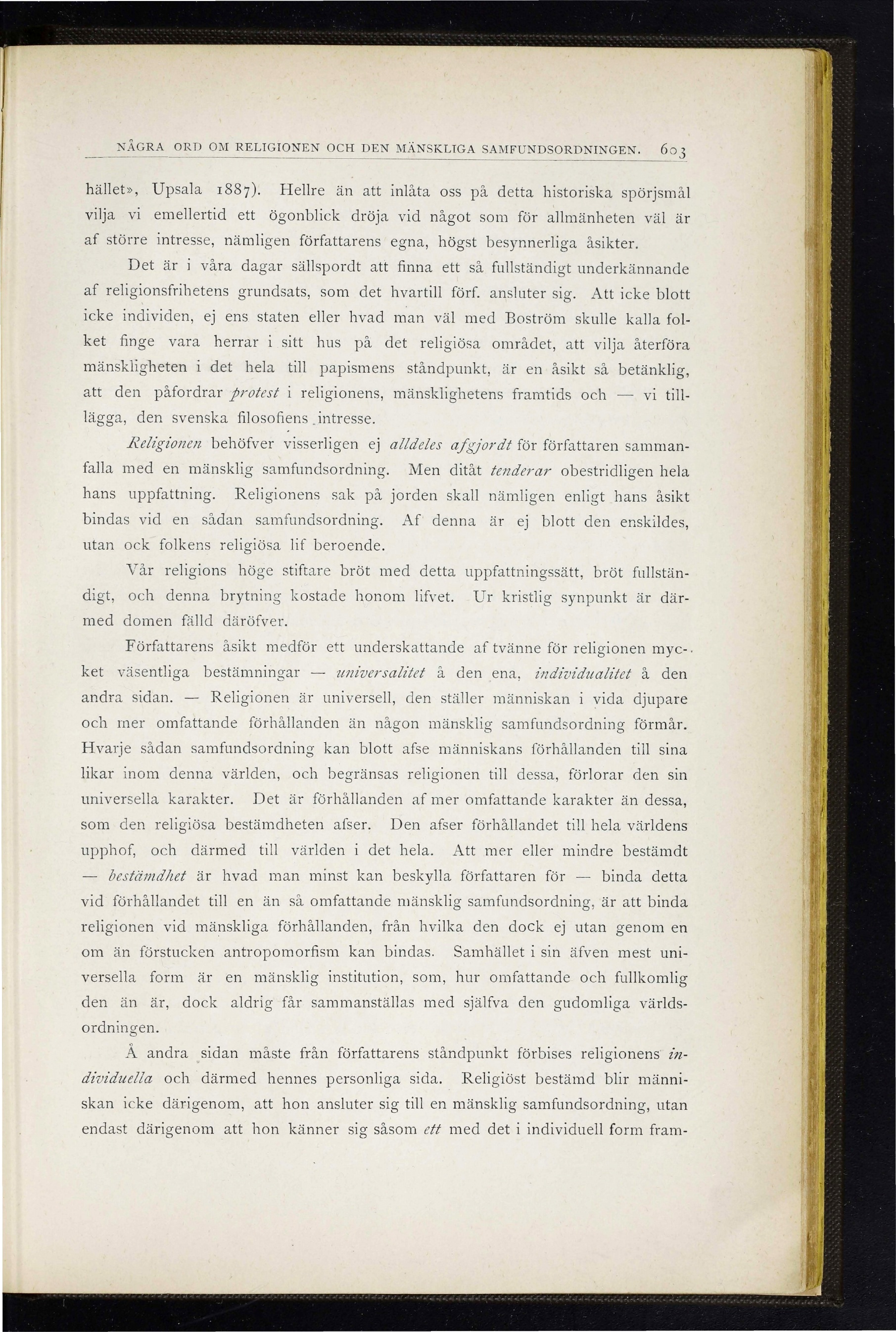 NÅGRA ORD OM RELIGIONEN OCH DEN MÄNSKLIGA SAMFUNDSORDNINGEN. 603