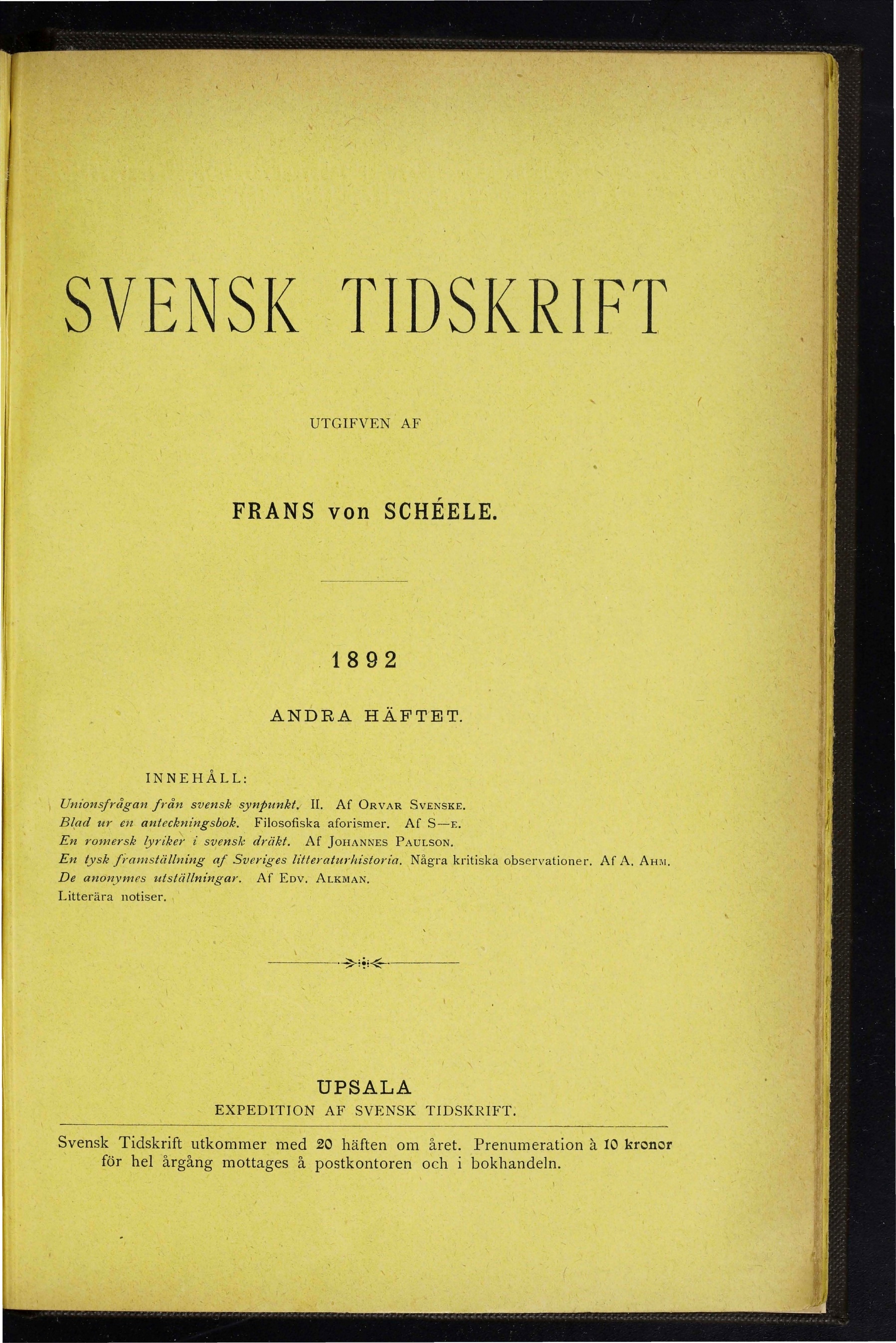 EXPEDITION AF SVENSK TIDSKRIFT.