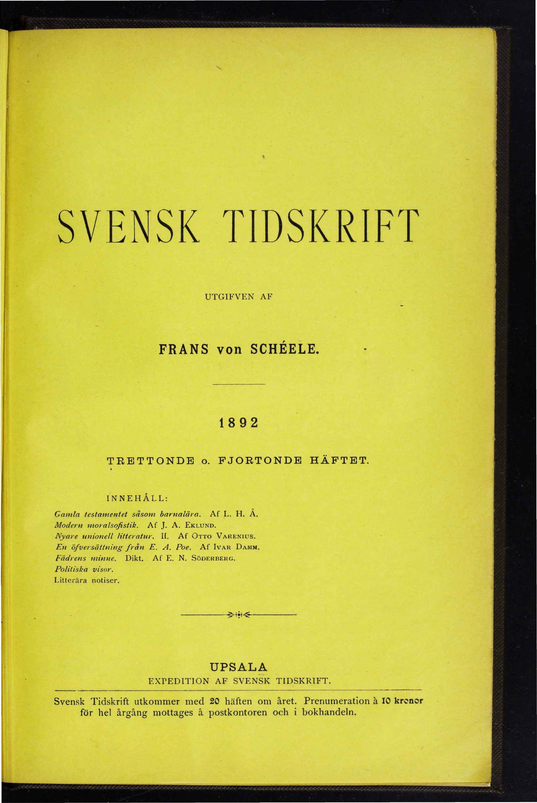för hel årgång mottages å postkontoren och i bokhandeln.