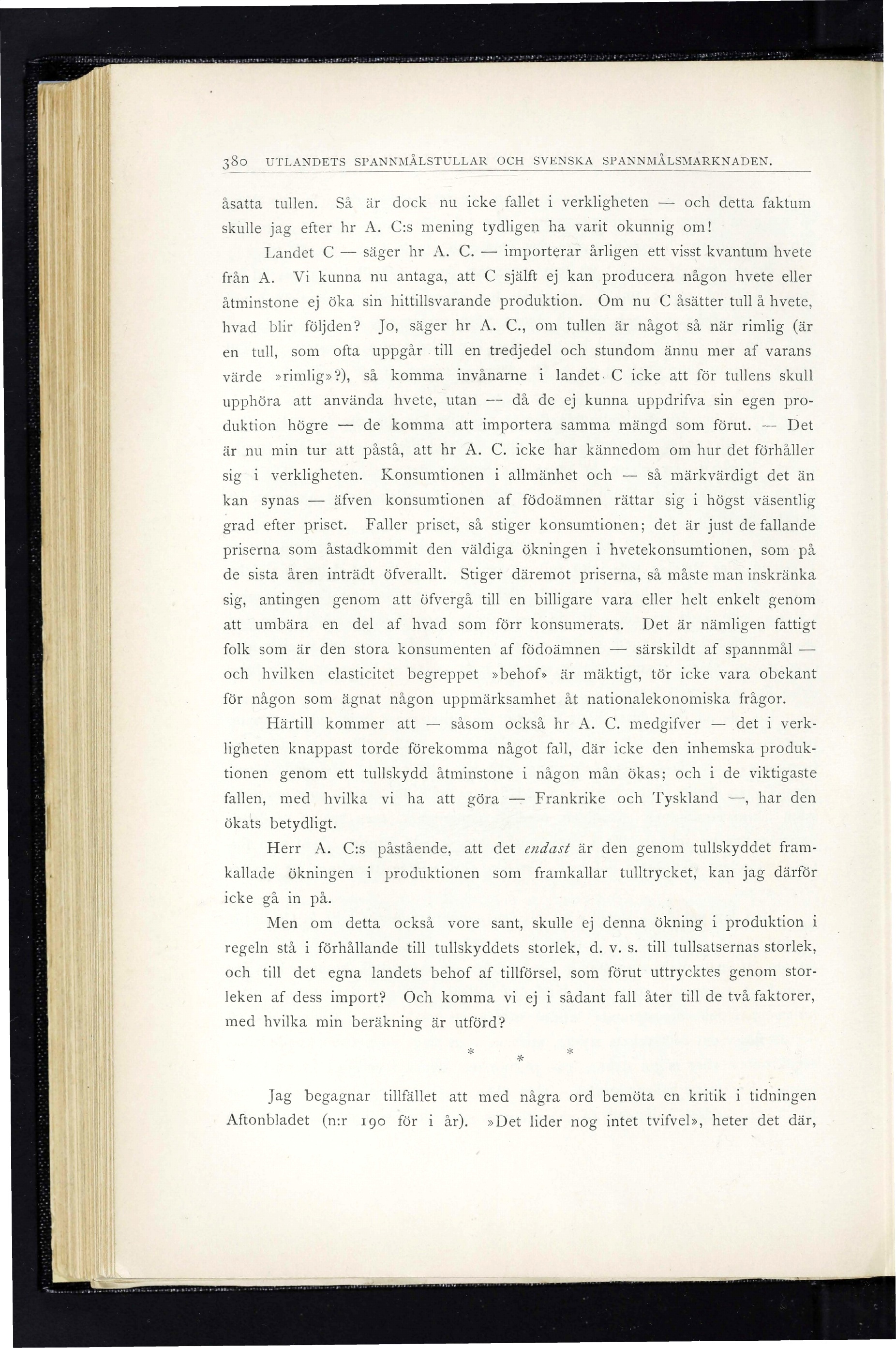hvad blir följden? Jo, säger hr A. C., om tullen är något så när rimlig (är
