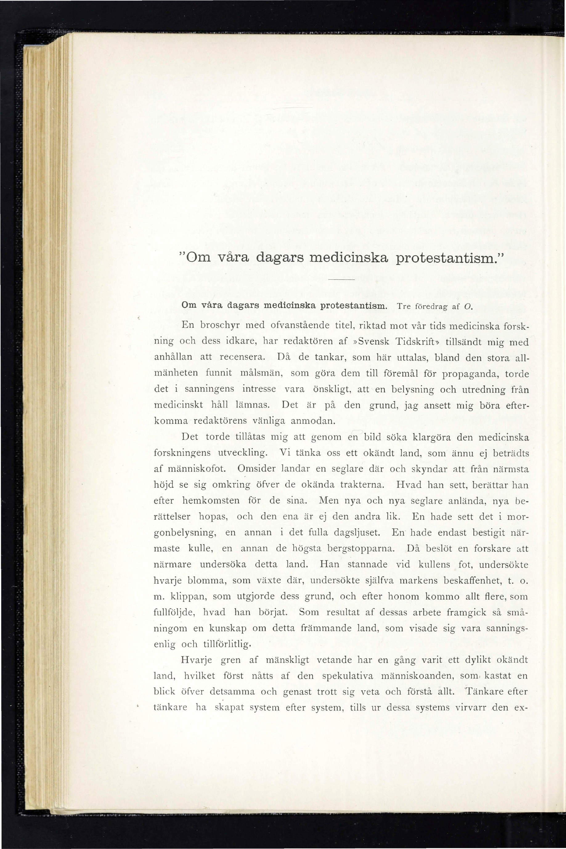 Om våra dagars medicinska protestantism. Tre föredrag af O.