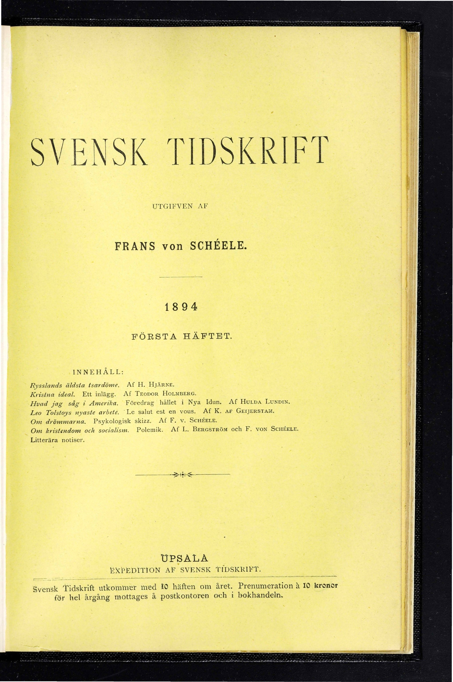 ·svensk Tidskrift utkommer med lo häften Oln året. Prenumeration a10 kronor