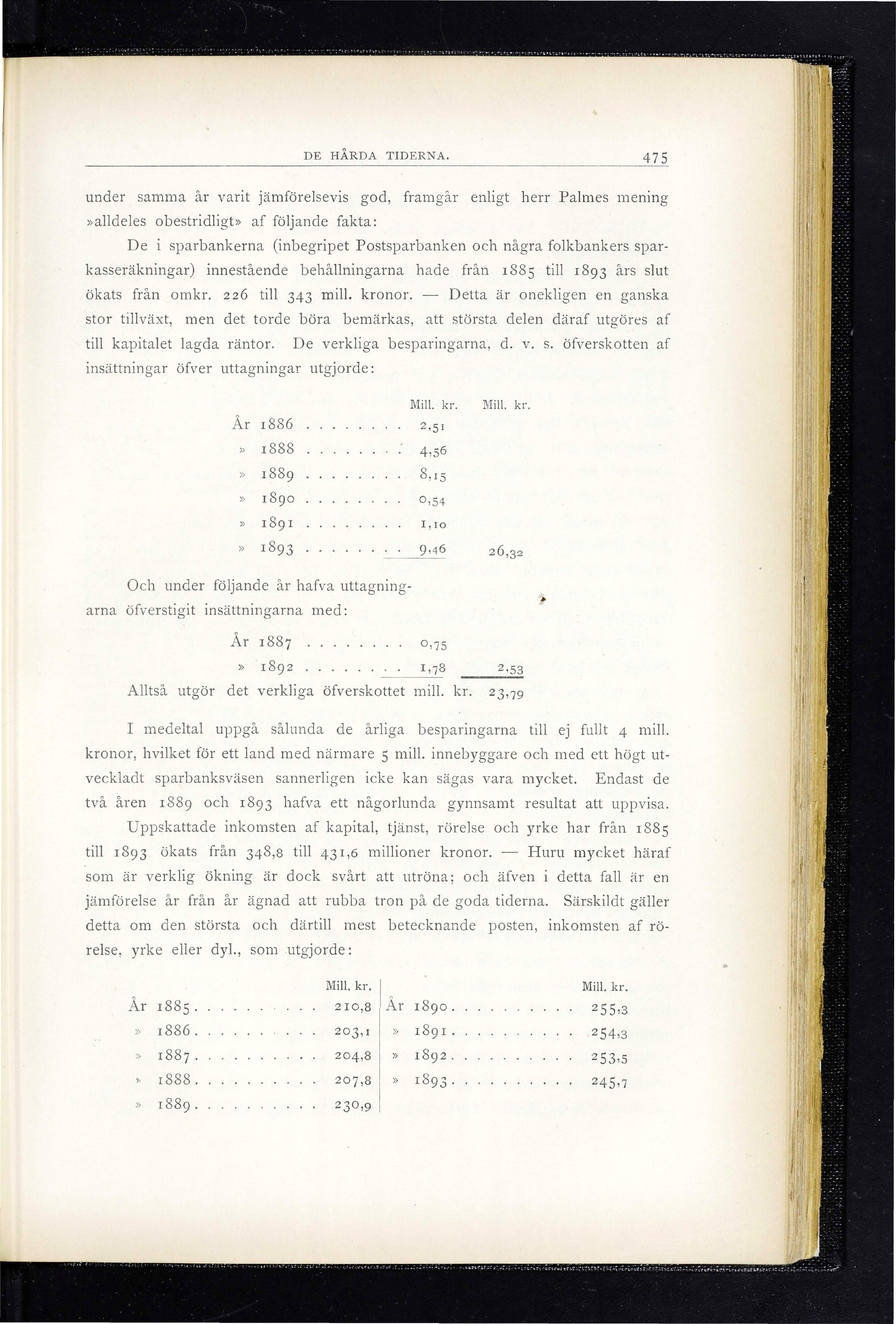 till kapitalet lagda räntor. De verkliga besparingarna, d. v. s. öfverskotten af