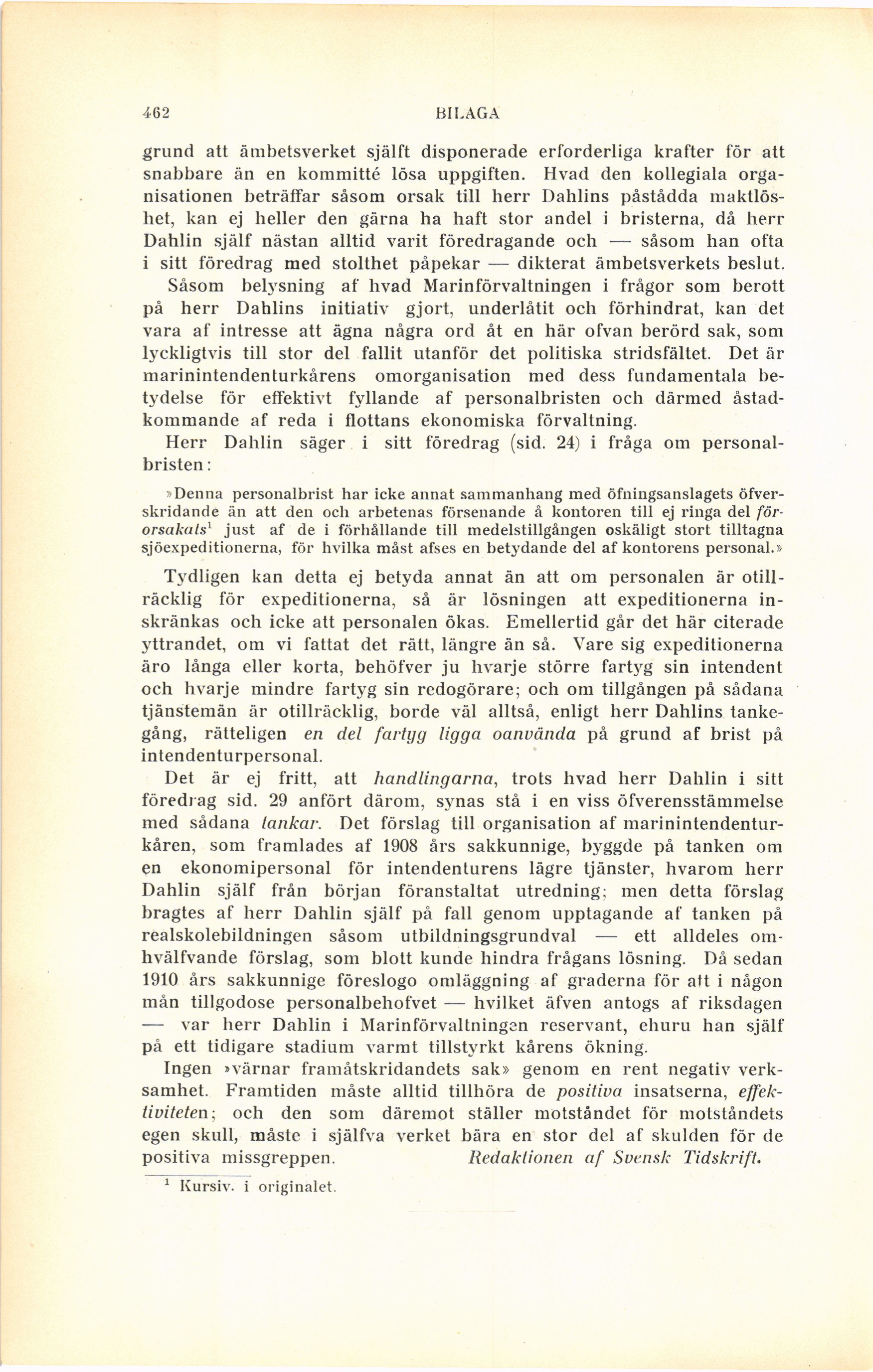 tjänstemän är otillräcklig, borde väl alltså, enligt herr Dahlins