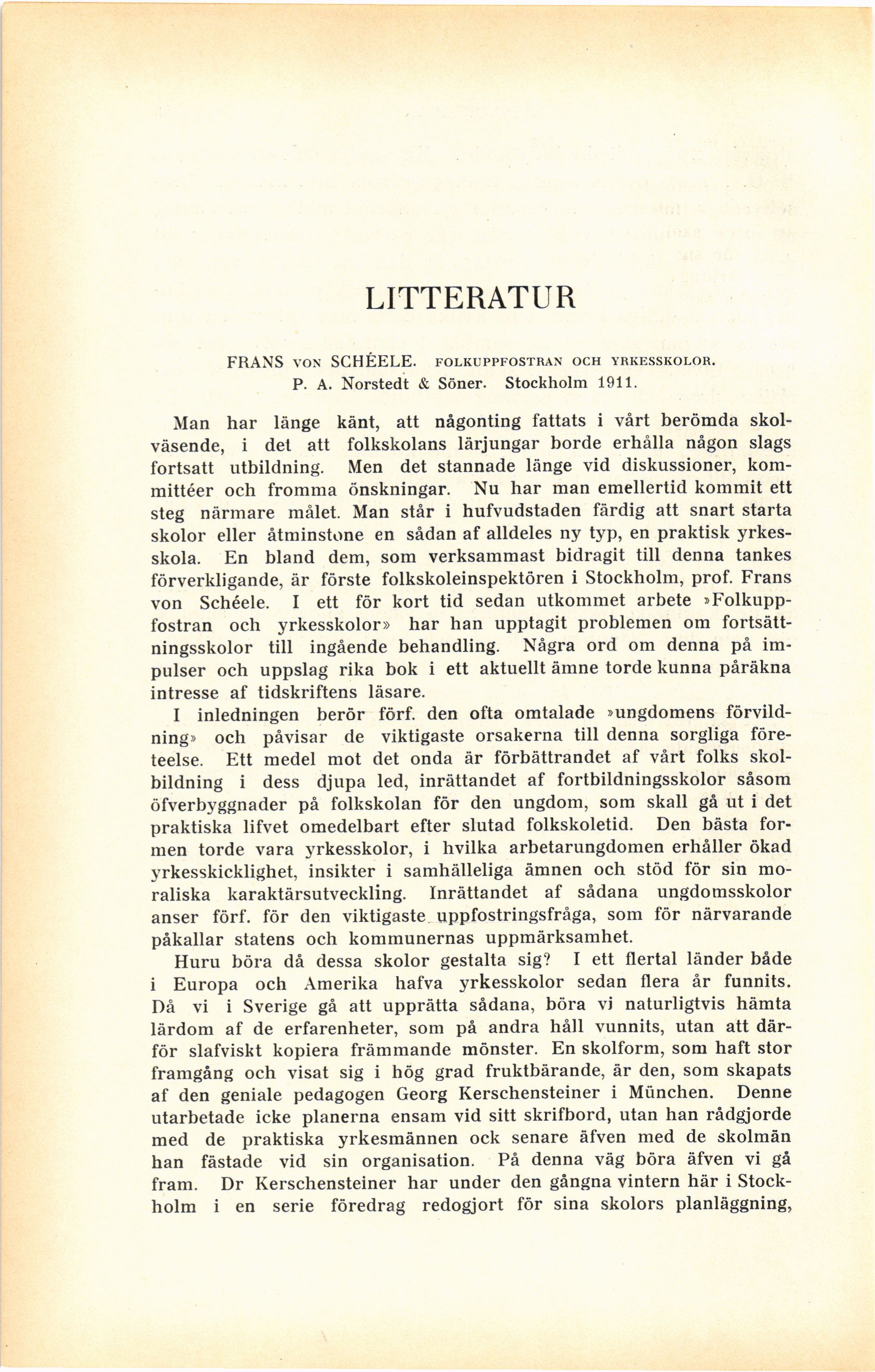 FRANS VON SCHEELE. FOLKUPPFOSTRAN OCH YRKESSKOLOR.