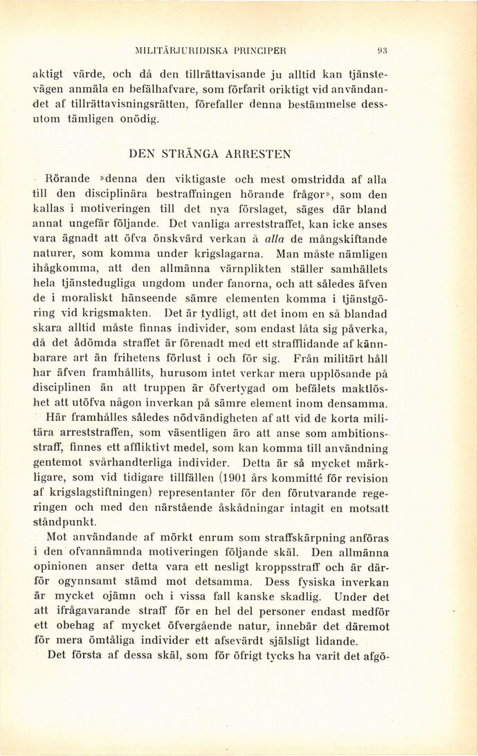 annat ungefär följande. Det vanliga arreststraffet, kan icke anses
