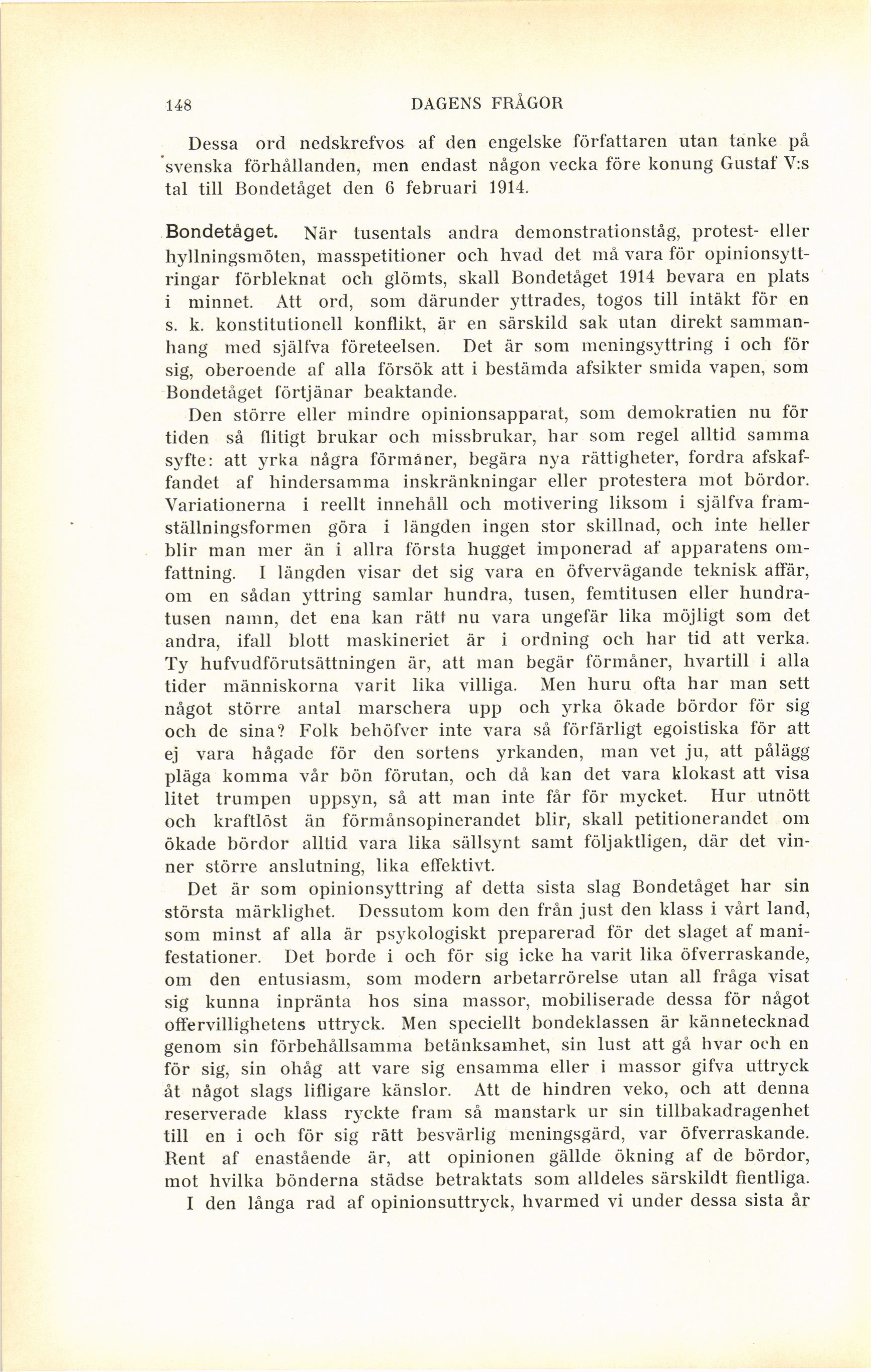 tal till Bondetåget den 6 februari 1914.