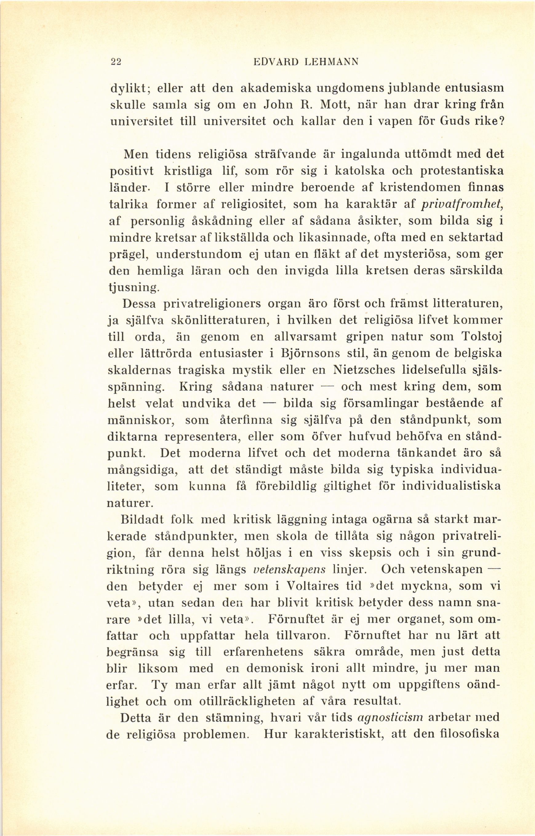Detta är den stämning, hvari vår tids agnosticism arbetar med