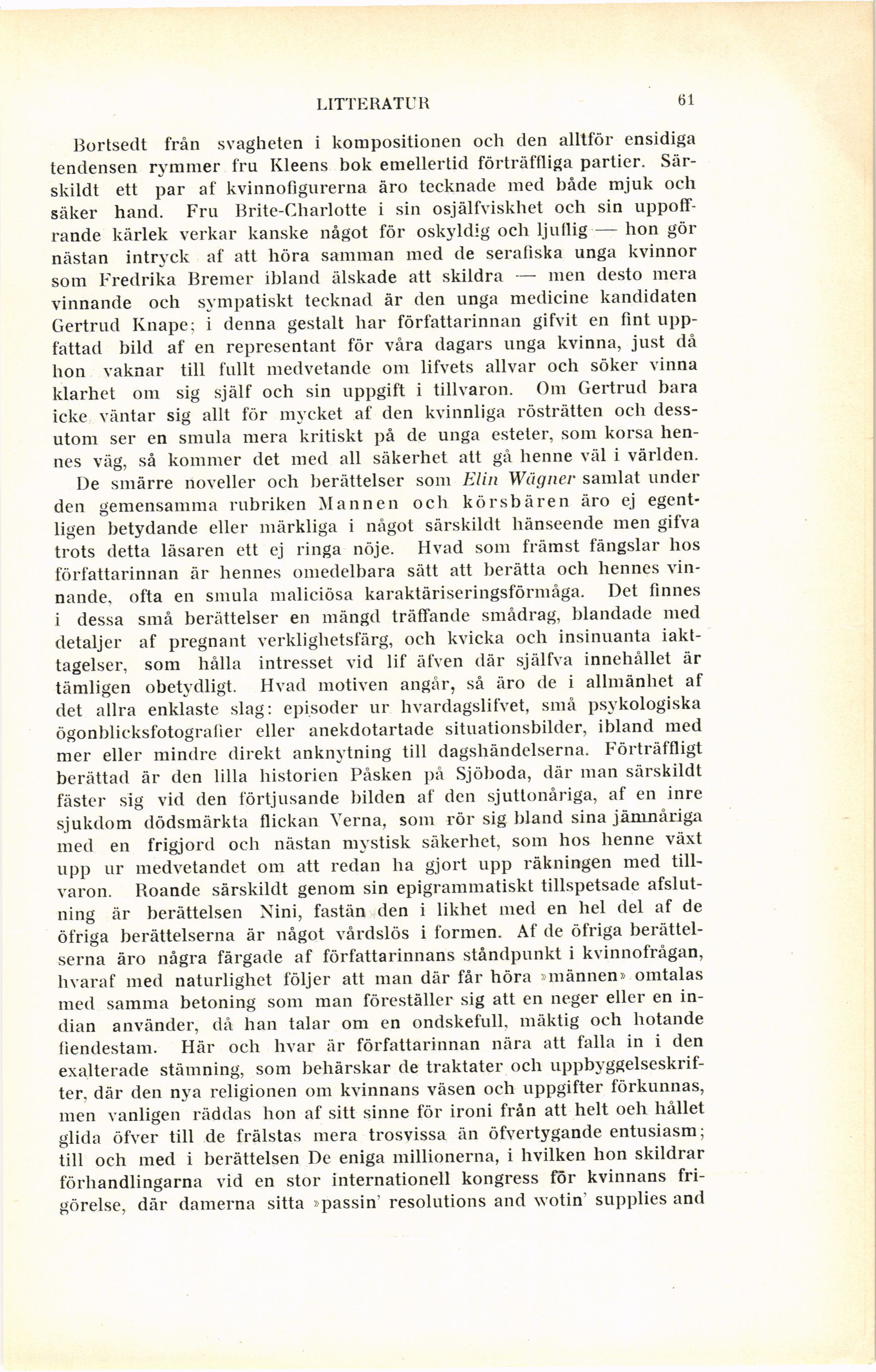 Full resolution (JPEG) - On this page / på denna sida - Häfte 1 - Litteratur - Ur bokmarknaden. Af O. Wieselgren - Elin Wägner: Mannen och körsbären