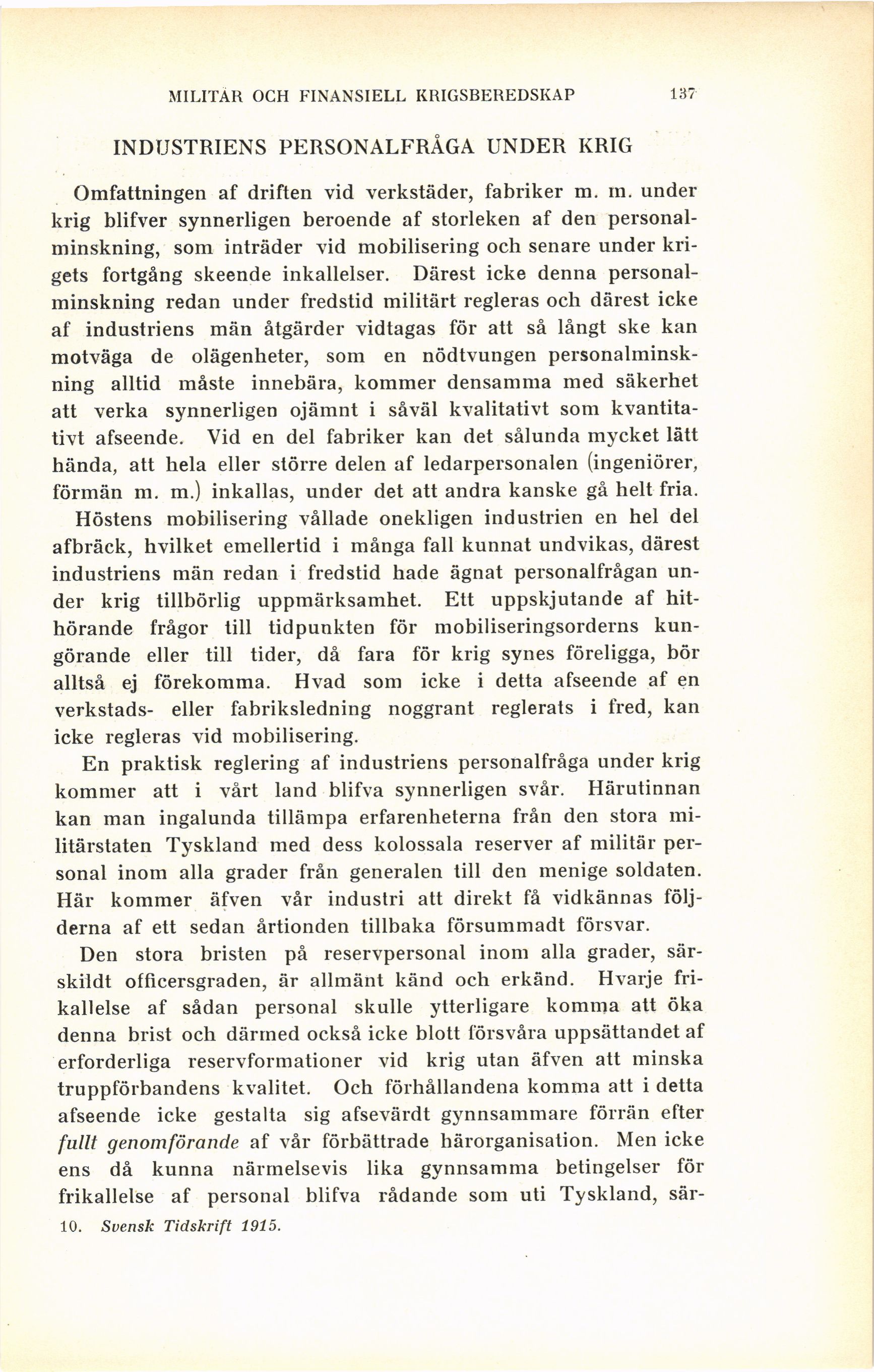INDUSTRIENS PERSONALFRÅGA UNDER KRIG