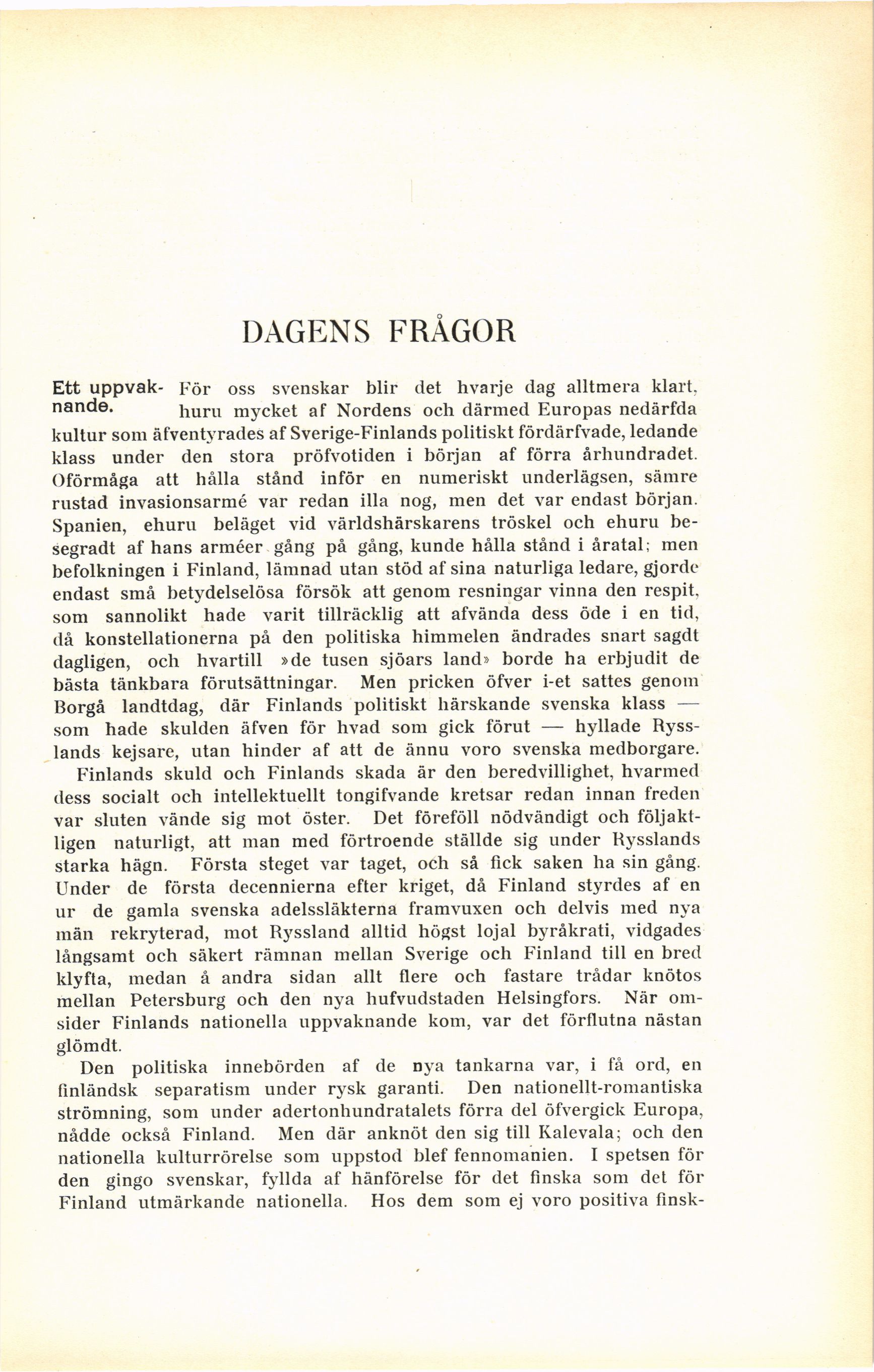 kultur som äfventyrades af Sverige-Finlands politiskt fördärfvade, ledande