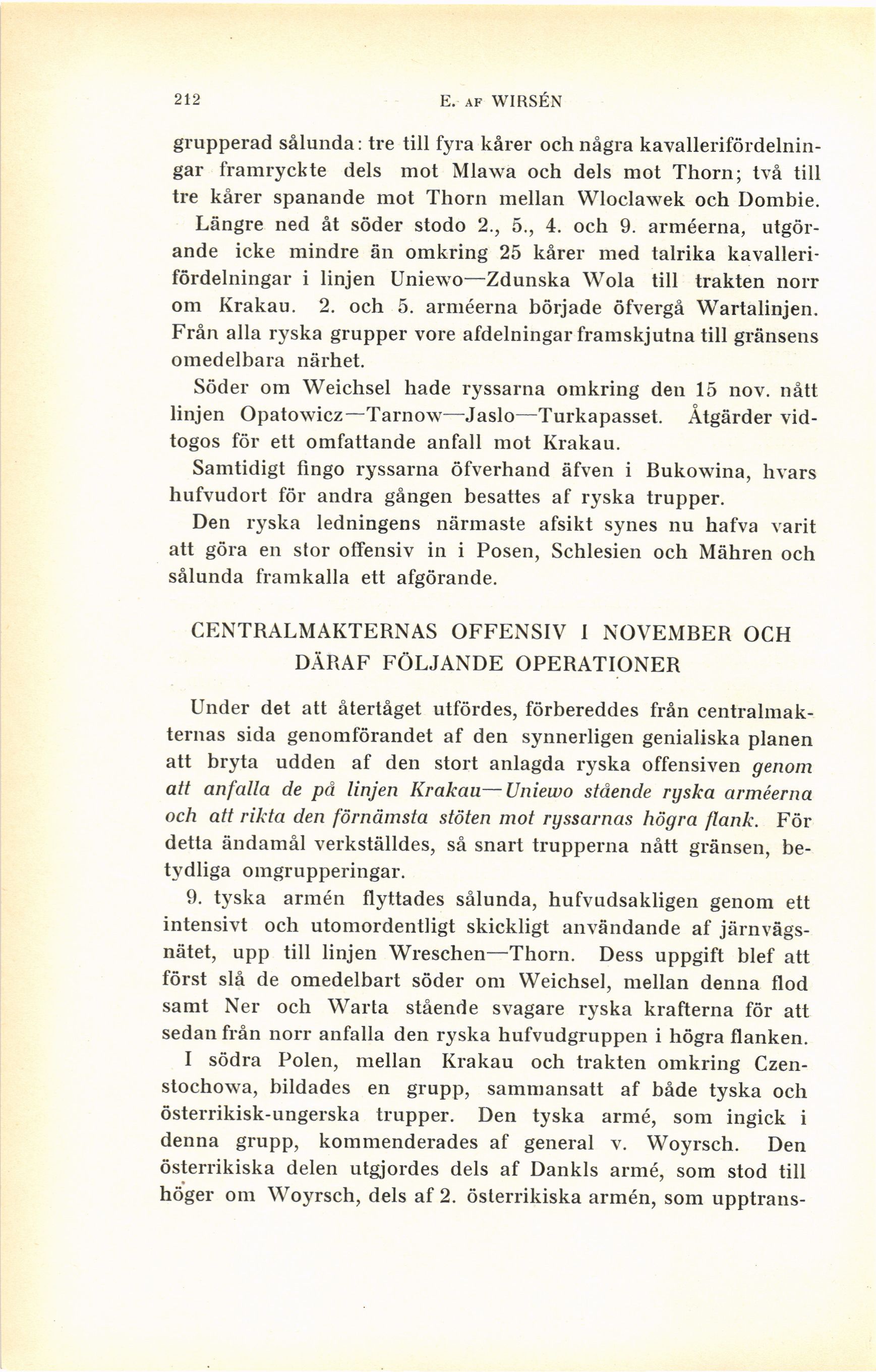om Krakau. 2. och 5. arméerna började öfvergå Wartalinjen.