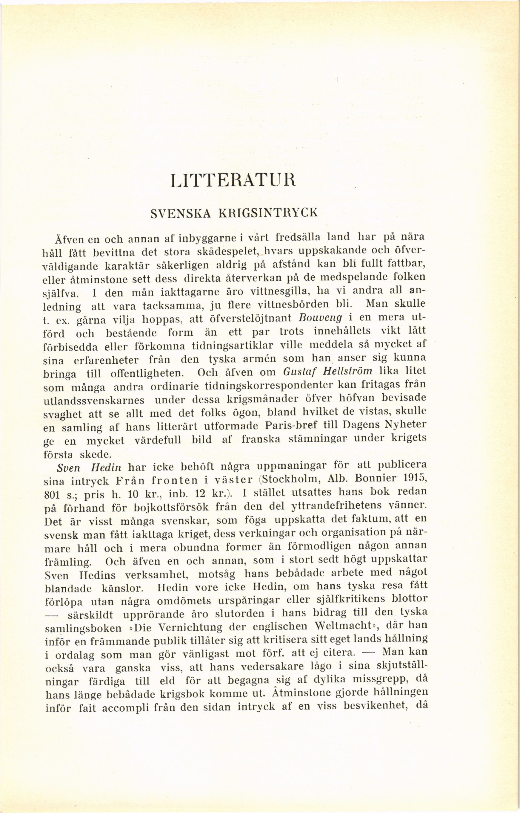 sina intryck Från fronten i väster (Stockholm, Alb. Bonnier 1915,