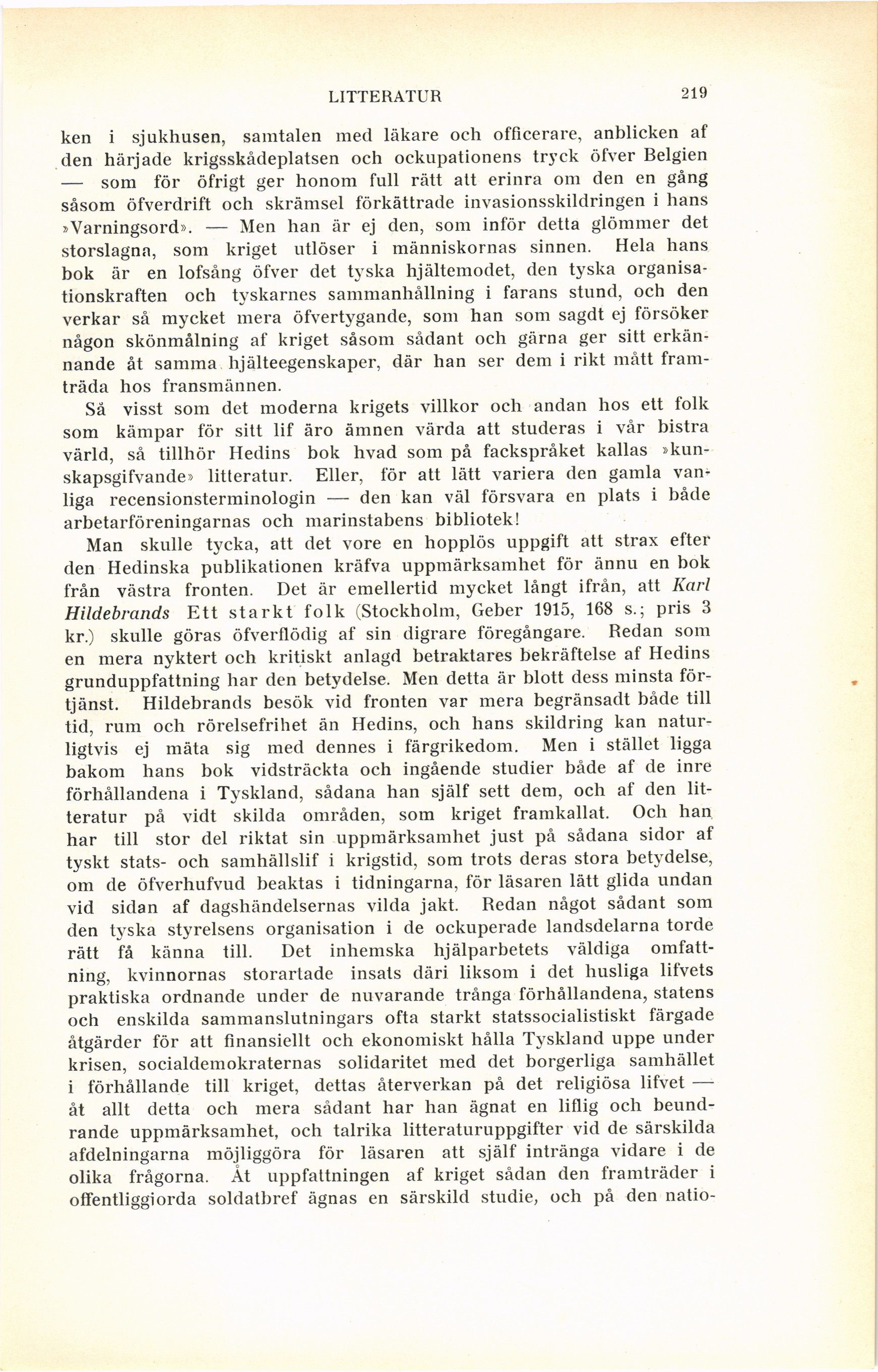 Hildebrands Ett starkt folk (Stockholm, Geber 1915, 168 s.; pris 3