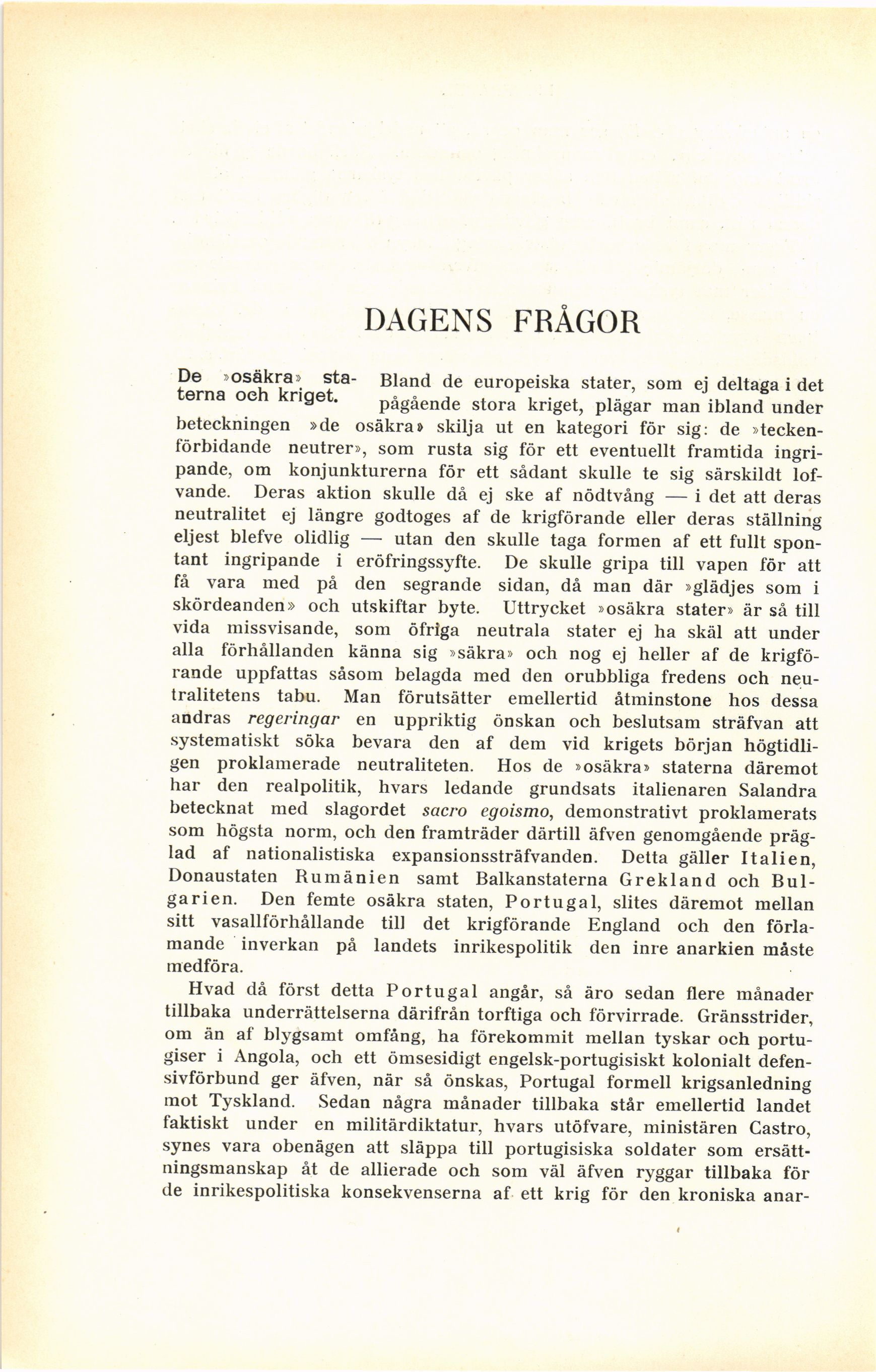 högtidligen proklamerade neutraliteten. Hos de »osäkra» staterna däremot