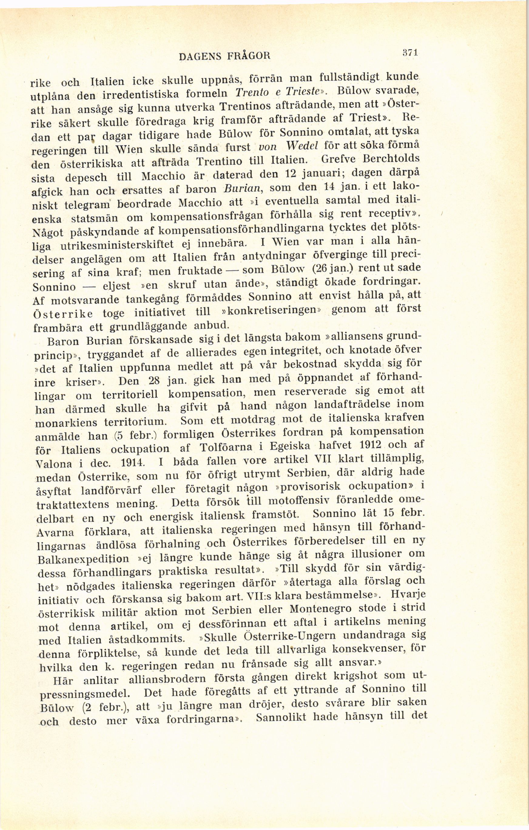 Redan ett pa^ dagar tidigare hade Bulow för Sonnino omtalat, att tyska