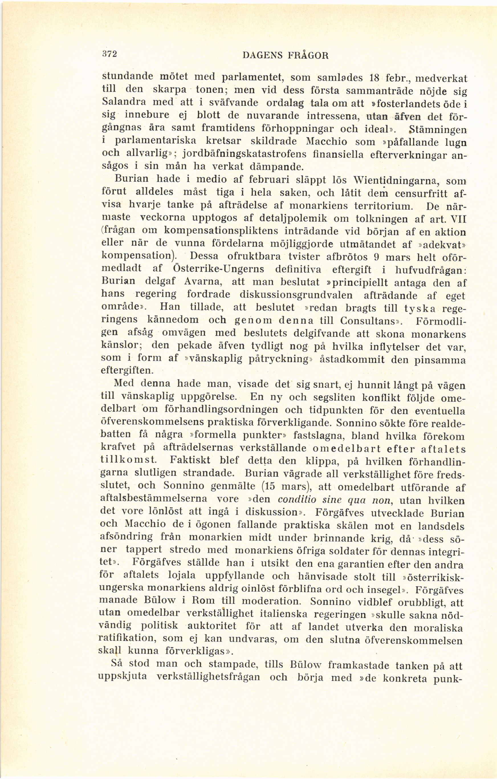 fredsslutet, och Sonnino genmälte (15 mars), att omedelbart utförande af