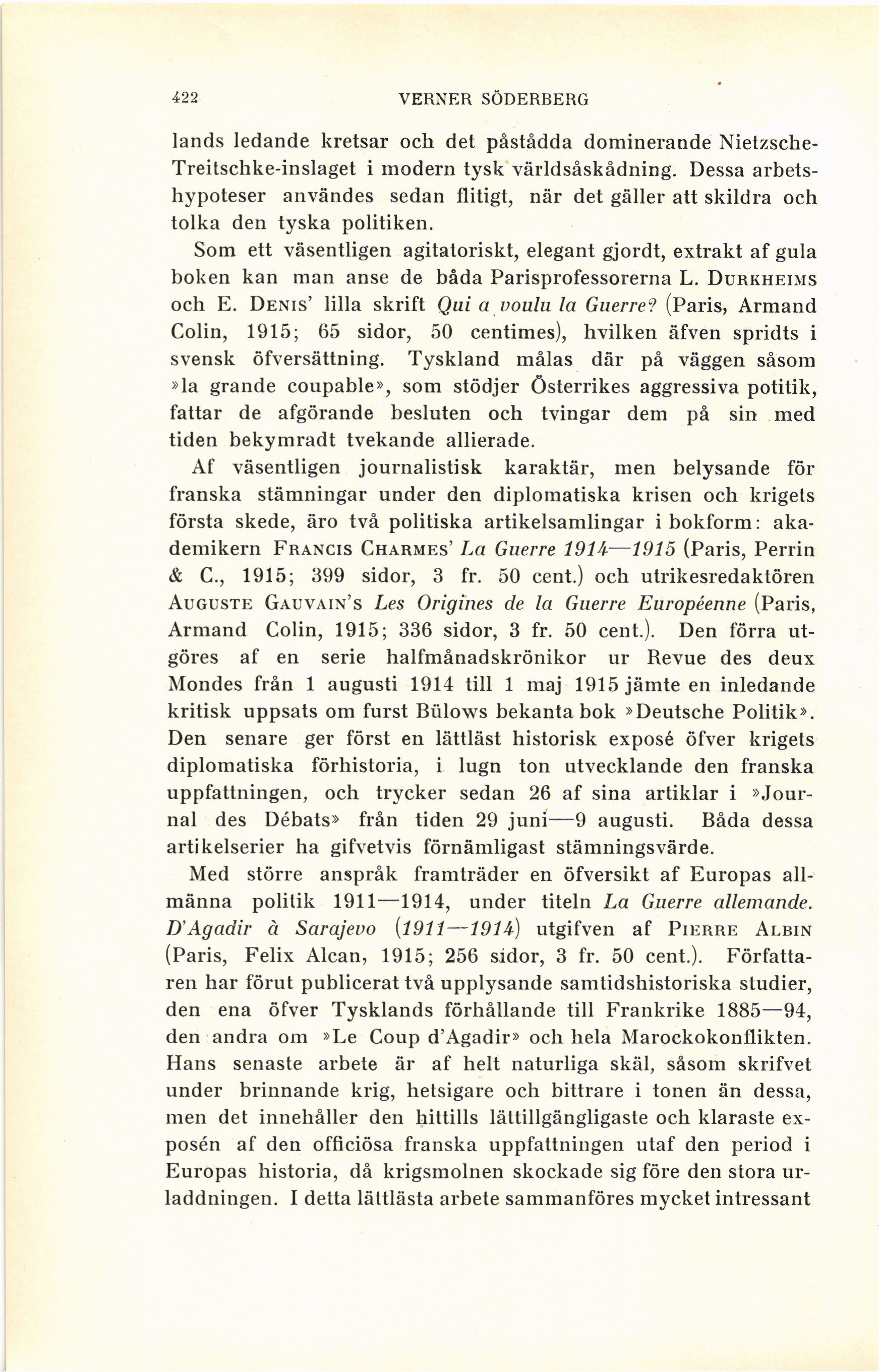 och E. DENIS’ lilla skrift Qai a voulu la Guerre^ (Paris, Armand