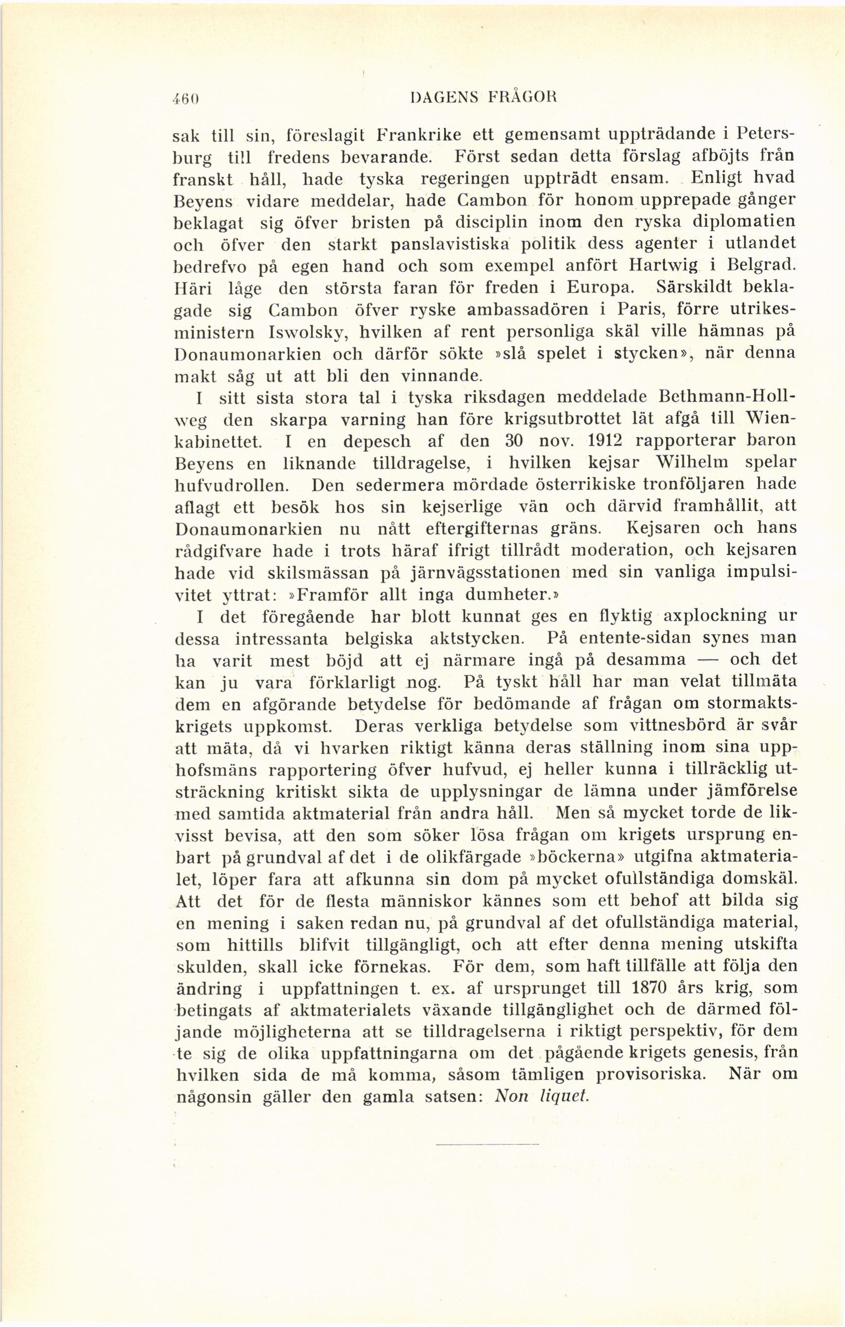 likvisst bevisa, att den som söker lösa frågan om krigets ursprung