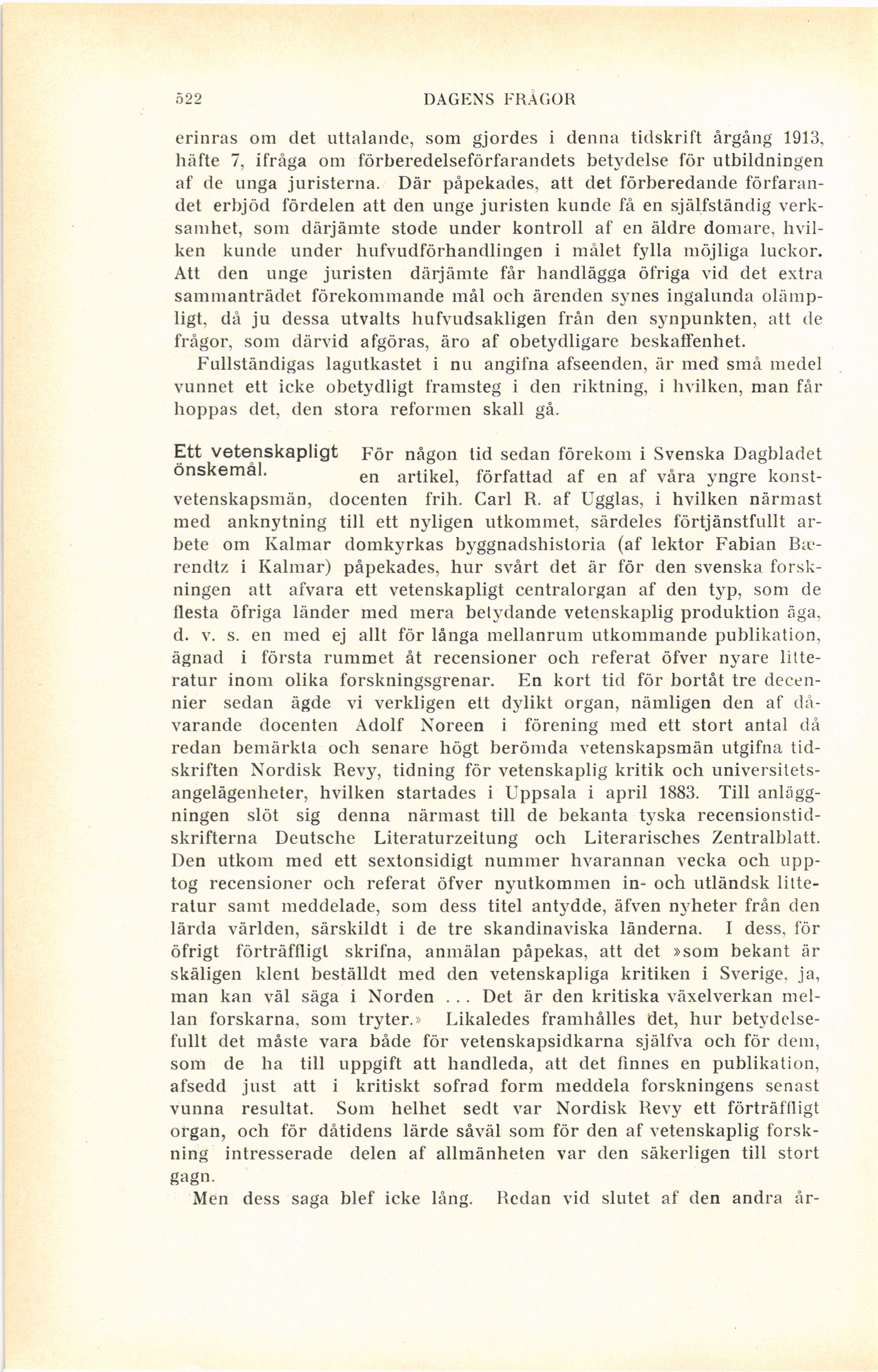 konstvetenskapsmän, docenten frih. Carl R. af Ugglas, i hvilken närmast